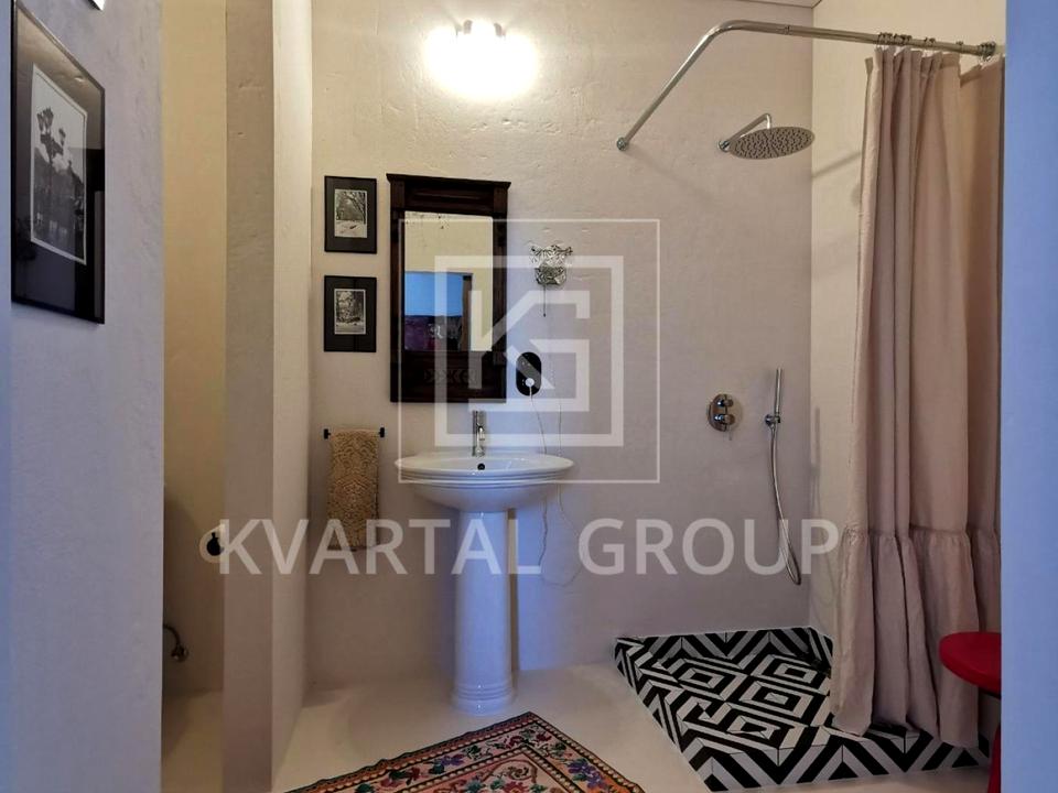 Всі внутрішні двері дерев’яні (шпон горіха) на лофт-системах з доводчиками, антикварні та вінтажні меблі ручної роботи, інверторні кондиціонери та пральна машина, іспанська сантехніка, керамічні вимикачи та розетки в ретро-стилі, телевізор Samsung The Frame65 (у вимнкненому стані екран відтворює картину), дубова стільниця, керамічна кухонна мийка, вінтажні та сучасні світильники ручної роботи, великі кімнатні рослини та ще багато інших унікальних рішень.