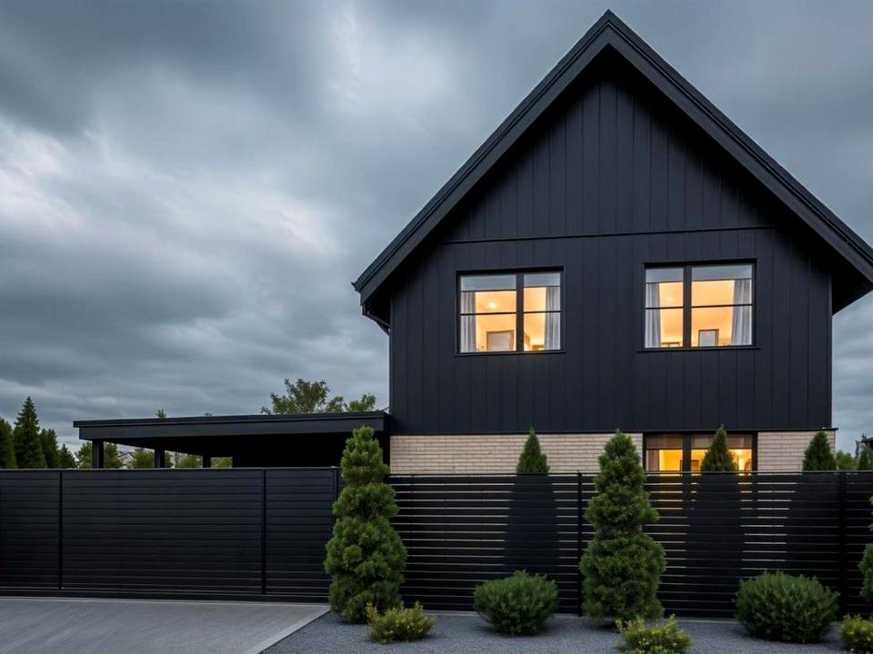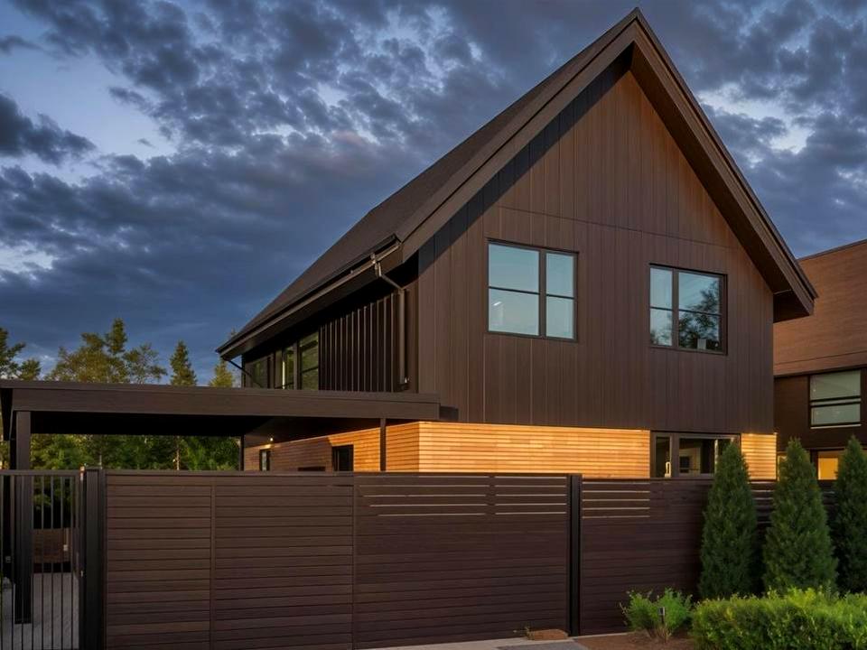 Будинок з керамоблоку, утеплений ватою. Фасад - клінкерна цегла та метал.