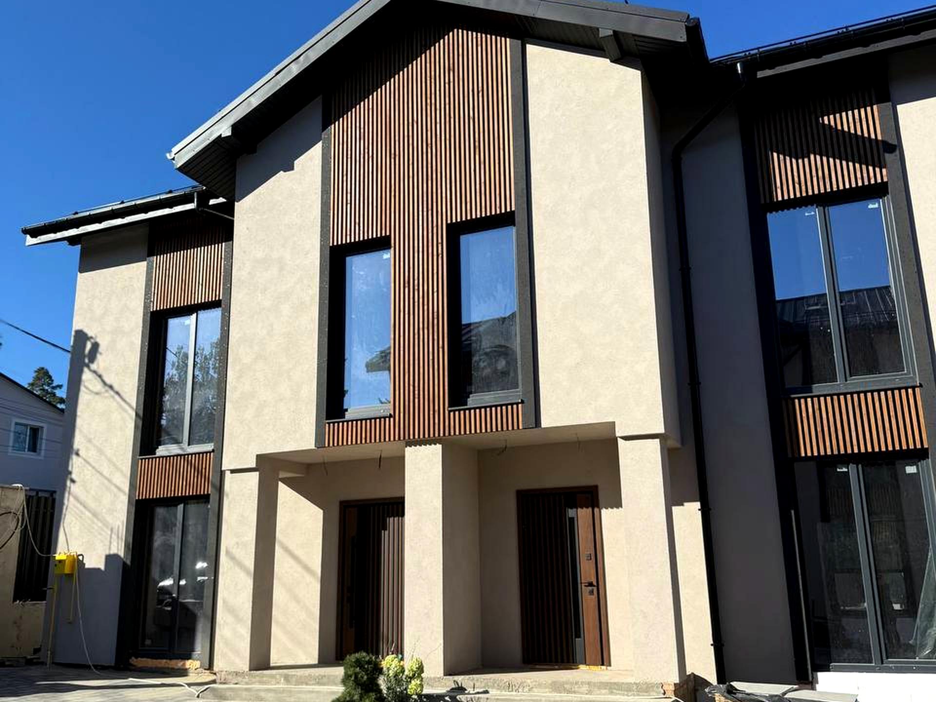 Таунхаус, 2 поверхи, 4 кімнати. Матеріал стін - цегляний, фундамент будинку - блоки. Під'їзд до будинку - асфальт. Площа ділянки 1 сотка. Висота стелі 3 метра. Вид з вікон у двір. Планування кімнат Роздільне. Газ природний. Холодна вода - водопровід, гаряча вода - газовий котел. Опалення котел газовий. У будинку 2 роздільних санвузла, туалет/ванна/душ. Сантехніка нова. Розводки труб немає. Вхідні двері залізні, сходи бетонні. В будинку немає балконів. Тип кухні - кухня-студія. Вікна металопластикові, нові. Покриття даху - металочерепиця. Є огорожа. Немає підвалу. У будинку є Супутникове ТБ, Лічильники. Будинок побудований в 2025 році. Централізована каналізація. У будинка 1 власник. Загальний стан будинку - Без ремонту. Автопарковка. Поруч є школа, дитсадок, зупинки, розважальні заклади, супермаркет, ліс. Прямий продаж, Можливе розтермінування. Сантехніка нова. Інтернет оптоволоконний. Зовнішнє утеплення стін. Працює без світла - вода, газ, опалення, інтернет. Без комісії