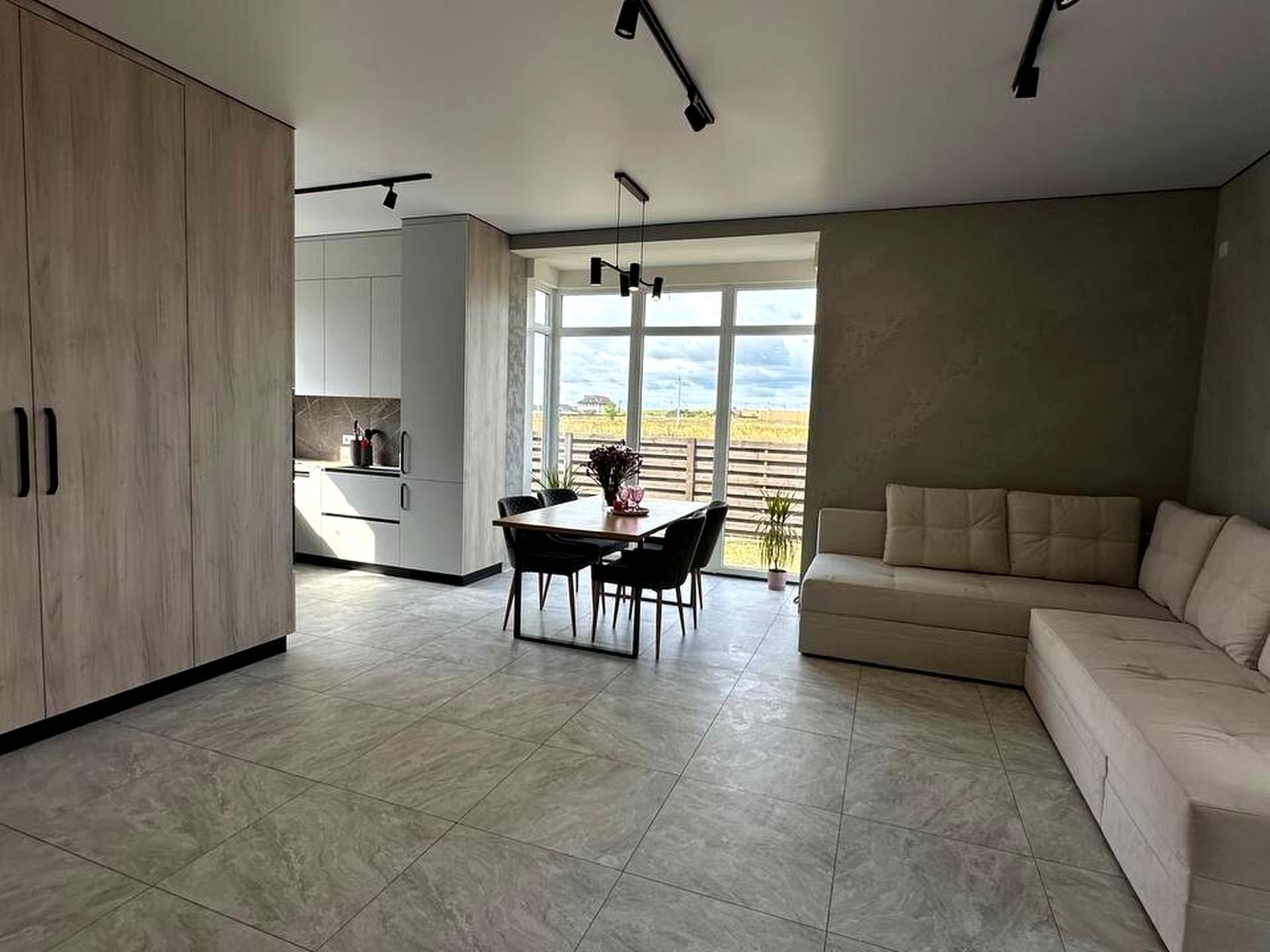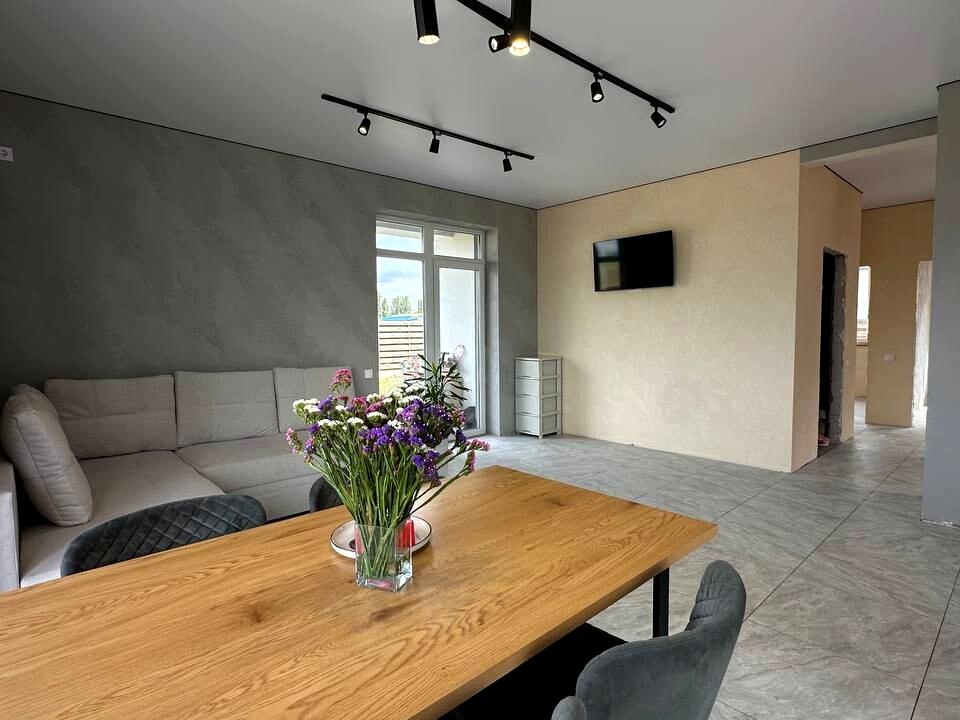 Будинок, 1 поверх, 3 кімнати. Під'їзд до будинку - асфальт. Площа ділянки 5 соток. Планування кімнат Роздільне. Тип кухні - кухня-студія. Своя каналізація. Загальний стан будинку - З ремонтом. Холодна вода - водопровід. Гаряча вода - електричний бойлер. Кількість санвузлів: 2. Інтернет оптоволоконний. Кількість паркомісць: 1. Без комісії
