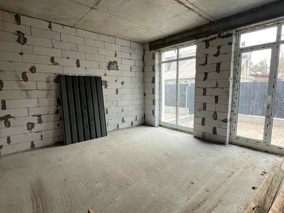 Таунхаус, 2 поверхи, 4 кімнати. Матеріал стін - газоблок. Під'їзд до будинку - асфальт. Площа ділянки 1 сотка. Планування кімнат Роздільне. Тип кухні - кухня-студія. У будинку є Ванна, Тераса. Централізована каналізація. Загальний стан будинку - Без ремонту. Газ природний. Холодна вода - водопровід. Гаряча вода - газова колонка. Кількість санвузлів: 2. Покриття даху - металочерепиця. Кількість паркомісць: 1. Без комісії