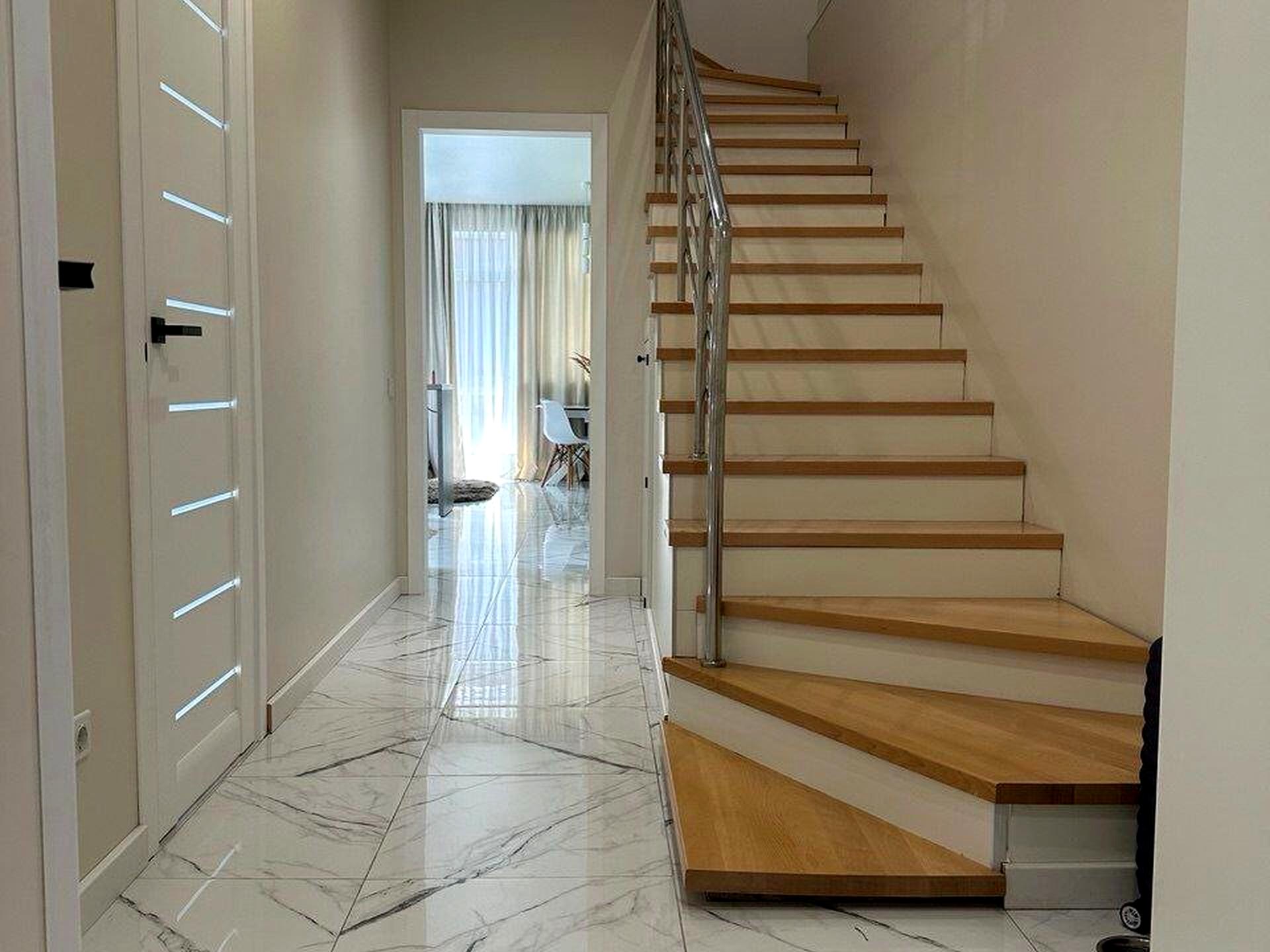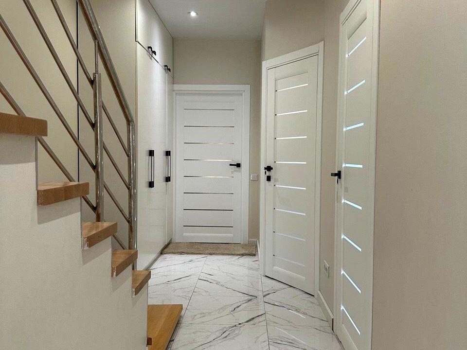 Продається дуплекс з ремонтом в Ірпені, 117 м², ділянка 1,6 сотки. 3 кімнати, кухня-вітальня, 2 санвузли, гардеробна, балкони. Тепла підлога, паркування для 2–3 авто, власна свердловина, септик. Будинок готовий до проживання.