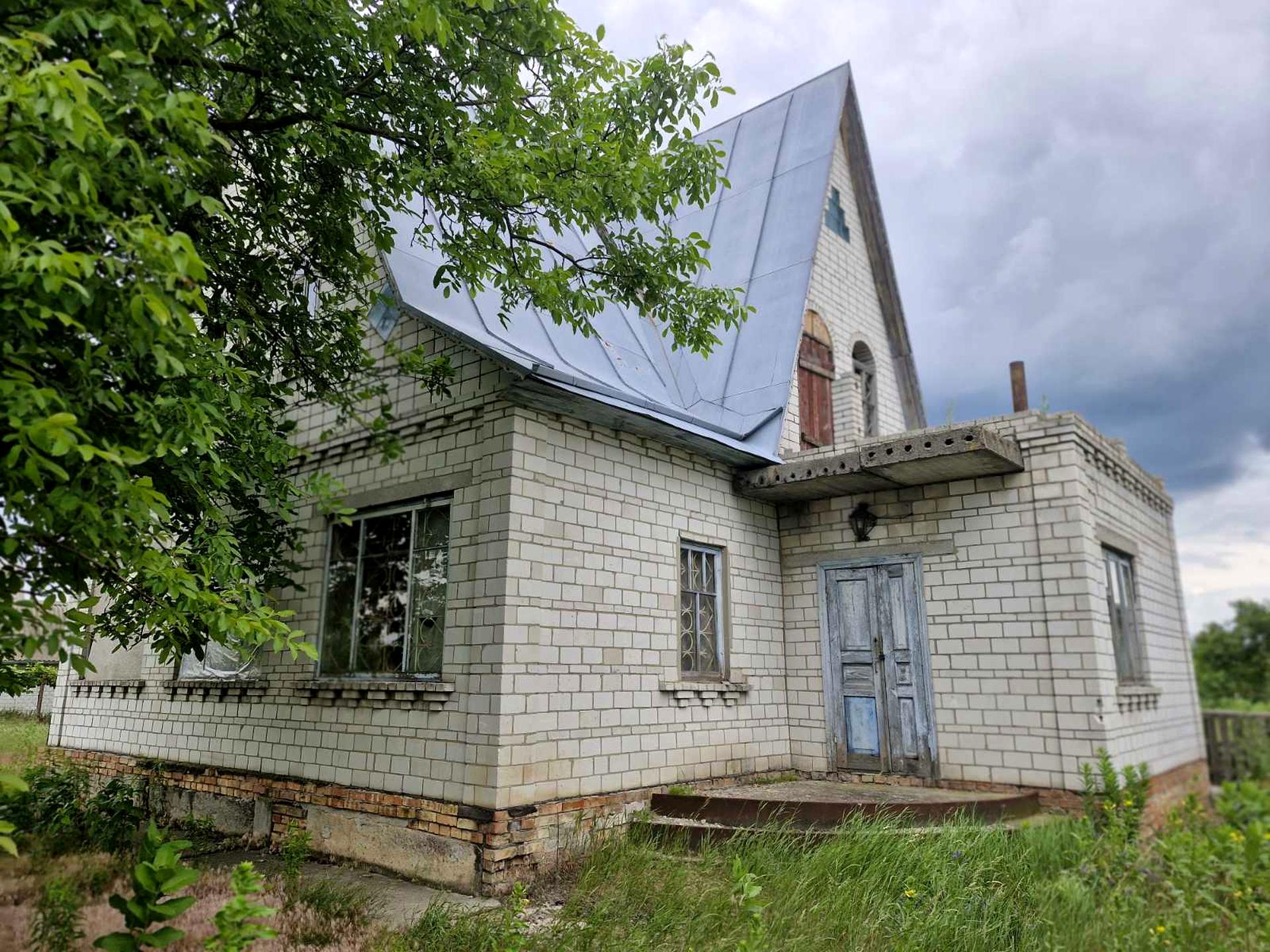 Будинок, 2 поверхи, 4 кімнати. Матеріал стін - цегляний. Під'їзд до будинку - асфальт. Площа ділянки 25 соток. Планування кімнат Суміжно-роздільна. Газ на вулиці. Холодна вода - свердловина. У будинку 2 спільних санвузла. Сантехніки немає. Вхідні двері залізні, сходи дерев'яні. Покриття підлоги - стяжка, підігріву підлоги немає. Тип кухні - кухня-їдальня. Вікна дерев'яні. Покриття даху - шифер. Є огорожа. Є підвал. Будинок побудований в 2000 році. На території ділянки є гараж, сад, город, прибудова. Загальний стан будинку - Від будівельників вільне планування. Поруч є зупинки, супермаркет. Торг доречний, Терміново, Вільна. Комісія за послуги 3 %