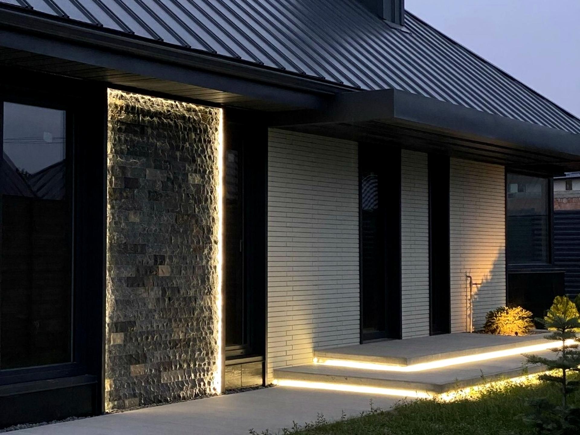 • Фасад: мармур + сланець