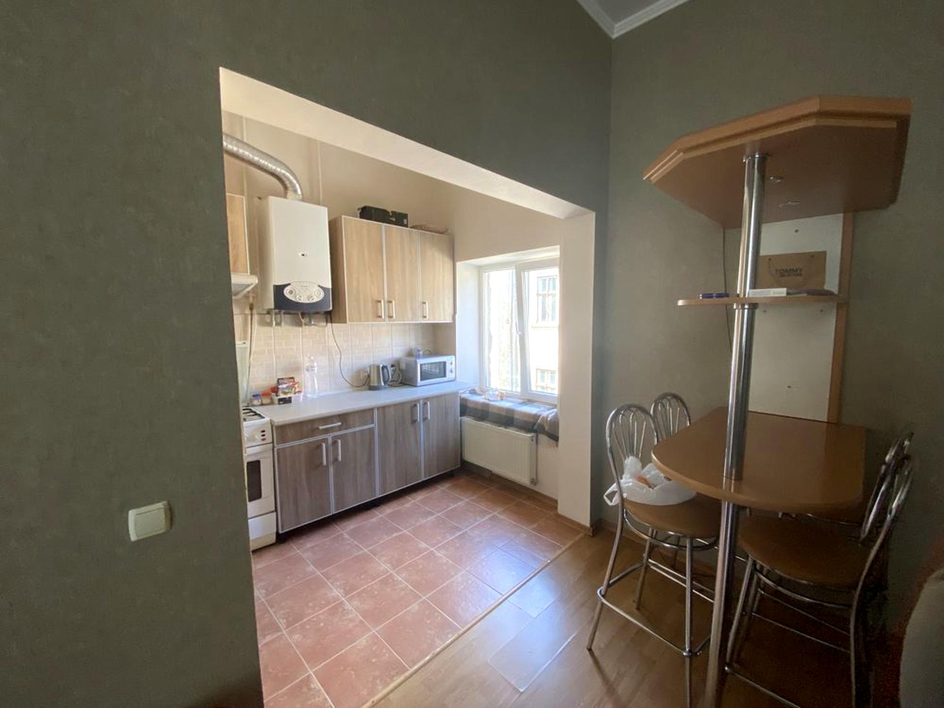 Кухня-студія затишна, оснащена потрібною технікою та меблями.
