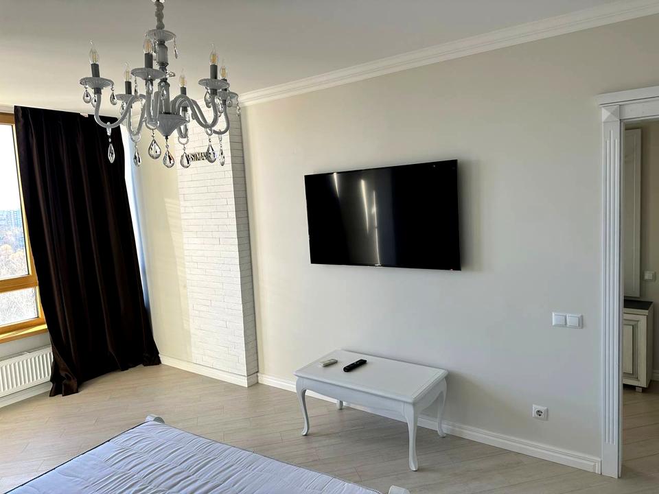 Велика шафа-купе, простора кухня з повним комплектом якісної техніки — холодильник, духова шафа, мікрохвильова, кавоварка.