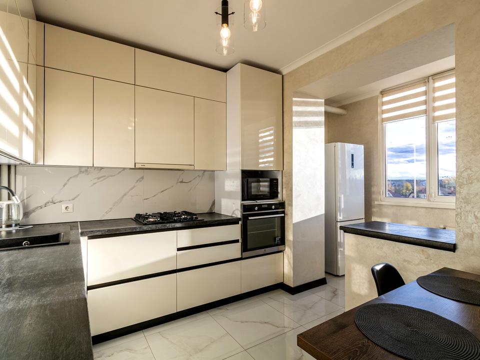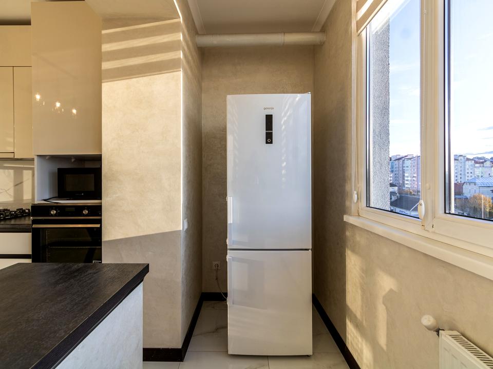 Квартира має роздільний санвузол та повністю обладнану кухню з усім необхідним для приготування улюблених страв, зокрема посудомийну машину.