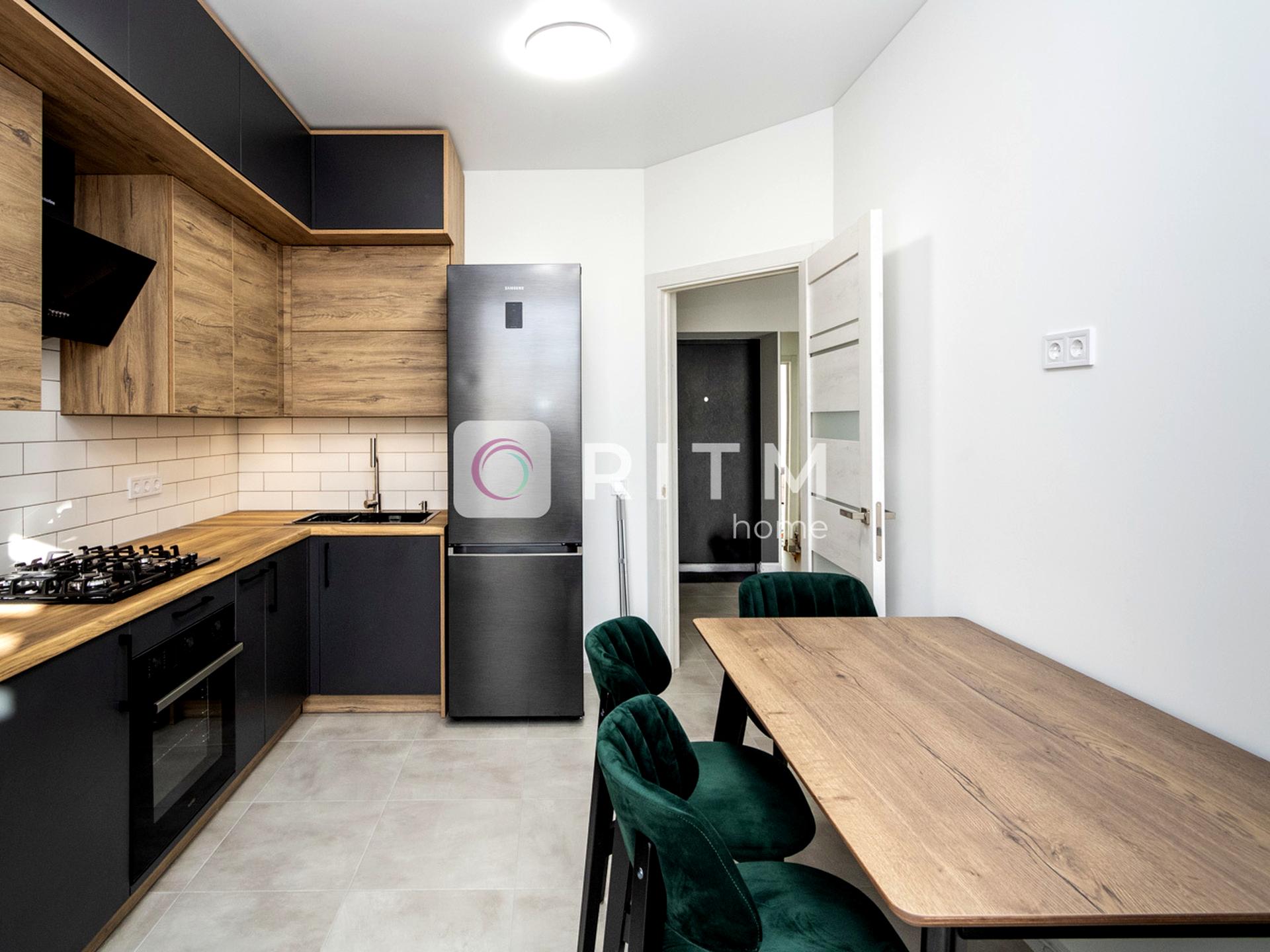 Комфортна квартира в самому центрі міста з просторою кухнею що містить шафи для зберігання посуду та побутову техніку (варильна панель, духова шафа, холодильк), що допоможуть у приготуванні та підтримуванні чистоти. Поряд зручний обідній стіл. Ванна кімната має необхідну сантехніку та пральну машину.