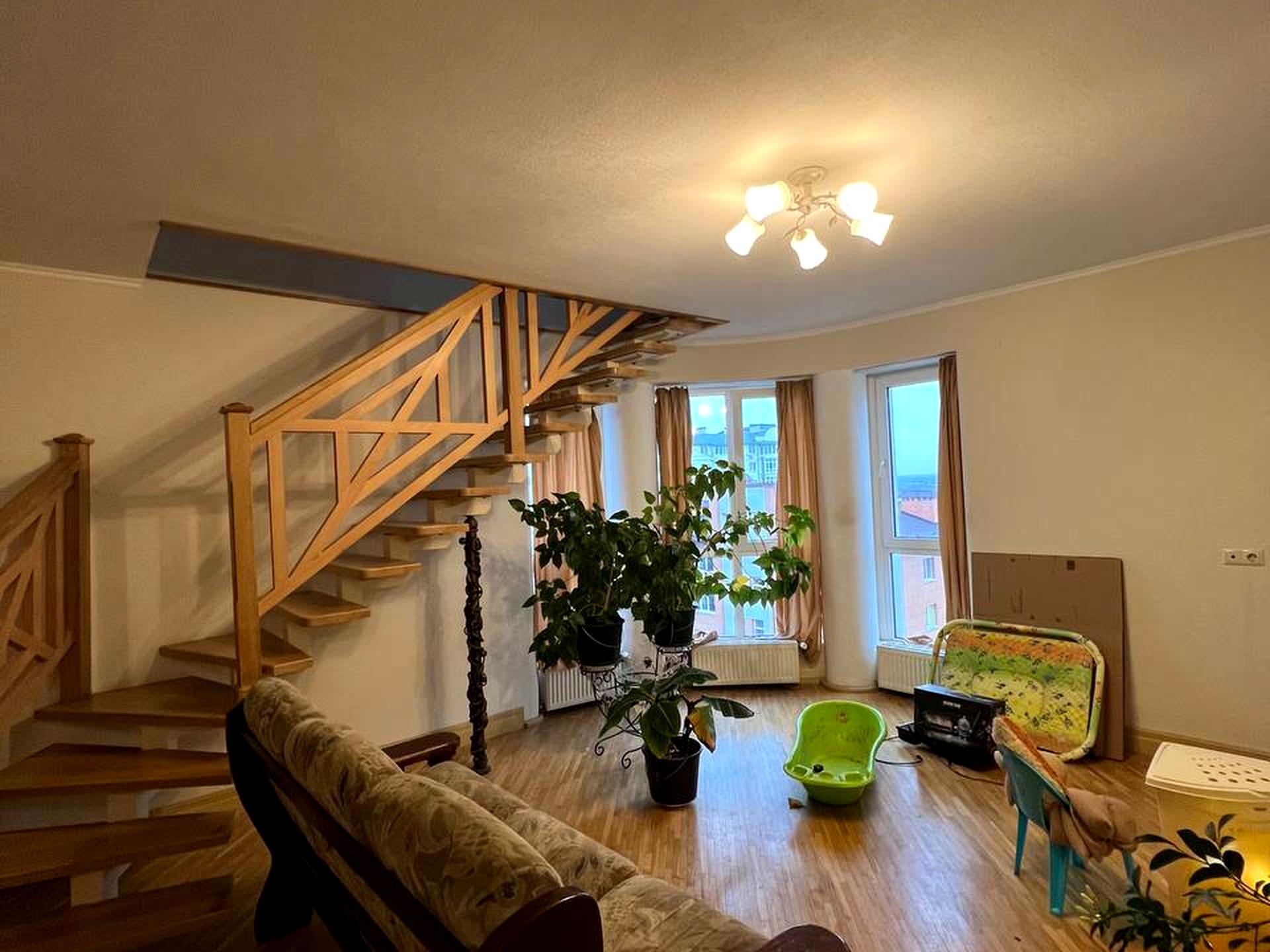 Трьохрівнева квартира у зручному районі міста. Світла та простора, гарне планування, багато природного світла, приємна атмосфера для життя. У квартирі зроблено косметичний ремонт, тож зараз вона виглядає охайно та оновлено — інтер’єр відрізняється від того, що на фото.