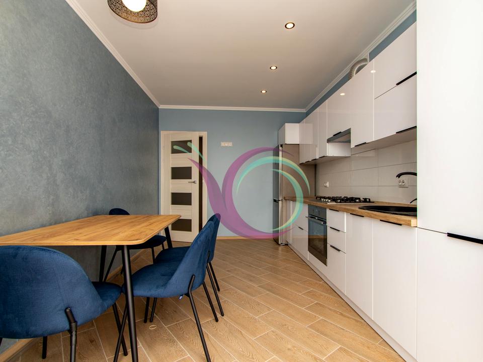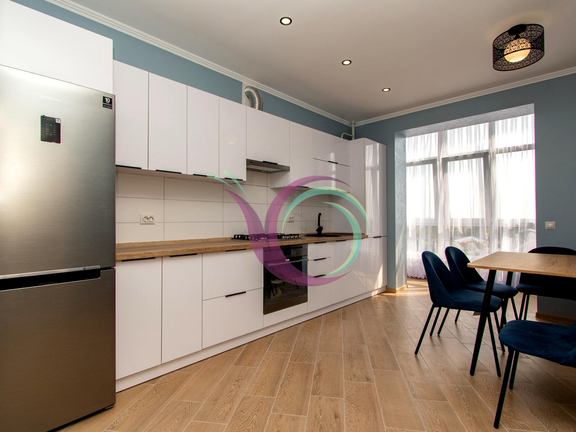 Спальна кімната з широким ліжком та новим ортопедичним матрацом, в іншій кімнаті є диван. Кухня з панорамними вікнами, є шафи для посуду, кухонна техніка та стіл зі стільцями. Санвузол з ванною та пральною машиною. Індивідуальне опалення заощадить кошти в холодний період.