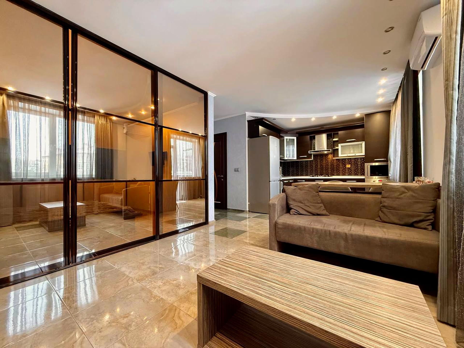 В квартирі 1 кімната, Технологія будівництва - Цегляна. Є газ, кухонна плита газова. Гаряча вода - газовий котел. Опалення індивідуальне - . Є балкон. У квартирі є Телевізор, Праска, Підігрів підлоги, Кондиціонер, Пральна машина, Ванна, Холодильник, Мікрохвильовка, Посудомийна машина, Посуд. Загальний стан квартири - З ремонтом. Кількість санвузлів: 1. Працює без світла - вода, газ. Тип кухні - кухня-студія. Кількість спален: 1. Комісія за послуги 100 %