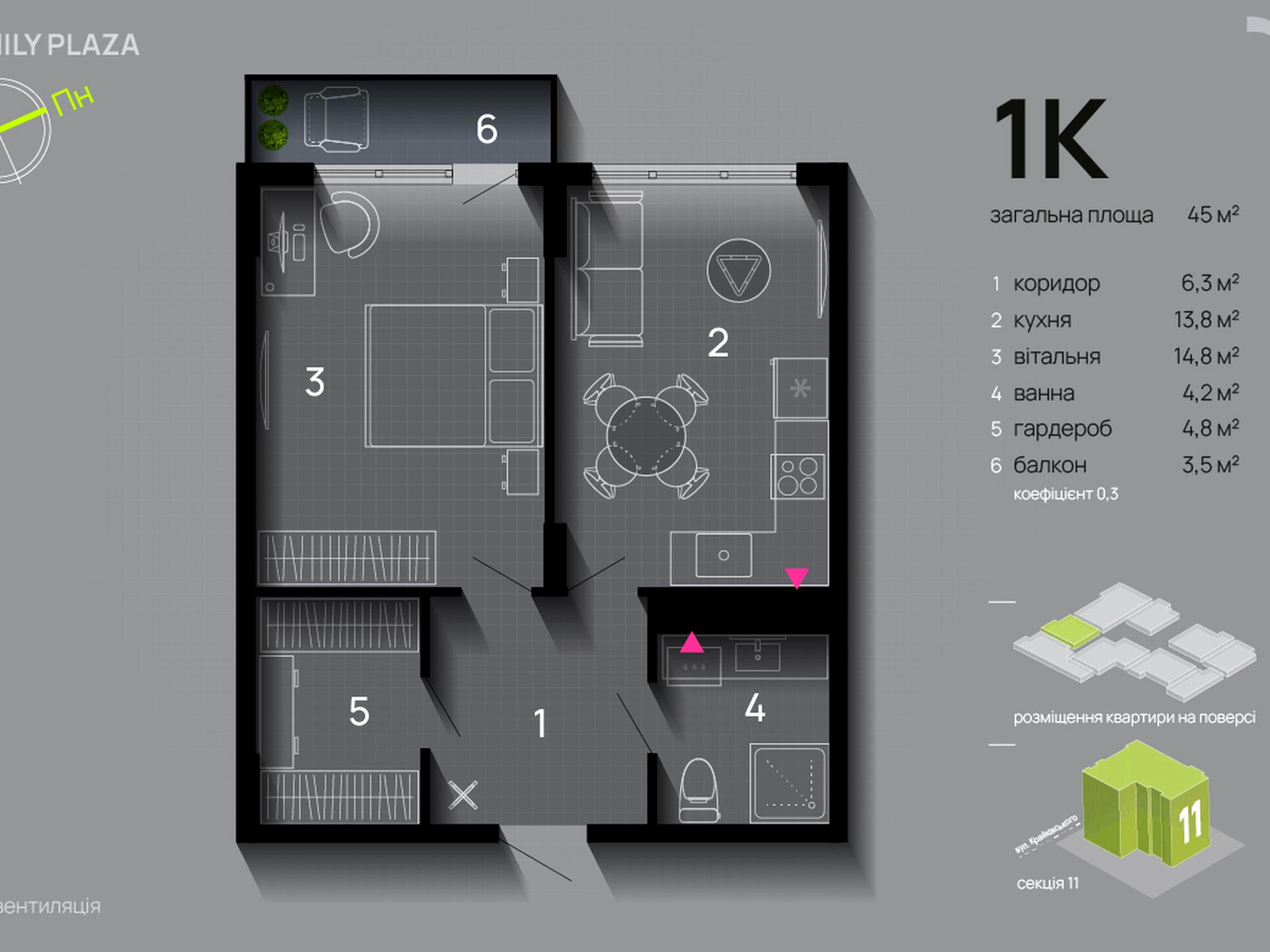 Поверх: 13 з 16 --- 45 м2