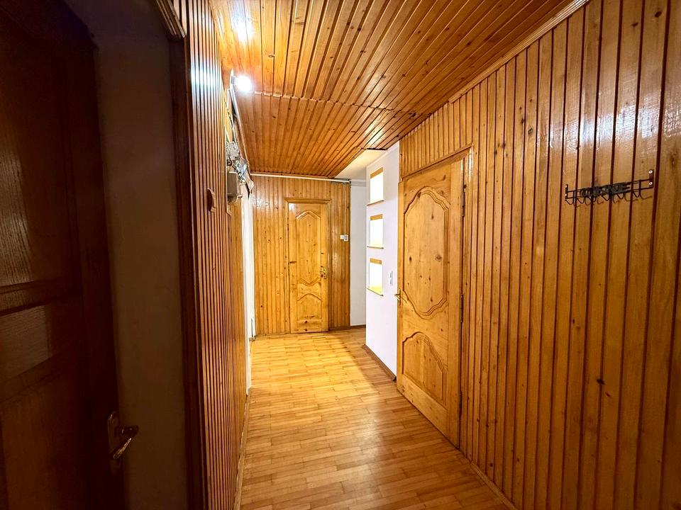 Затишний деревяний інтерєр у коридорі та кімнатах створює теплу атмосферу.