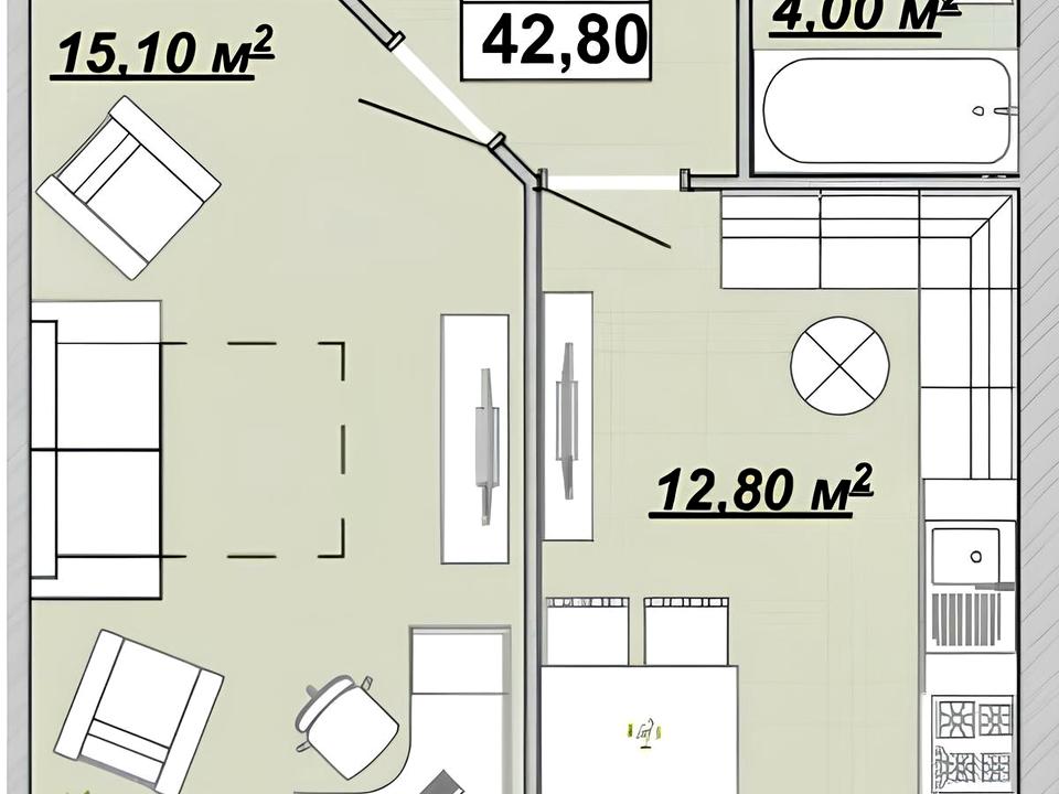 📐 Загальна площа: 42,7 м²