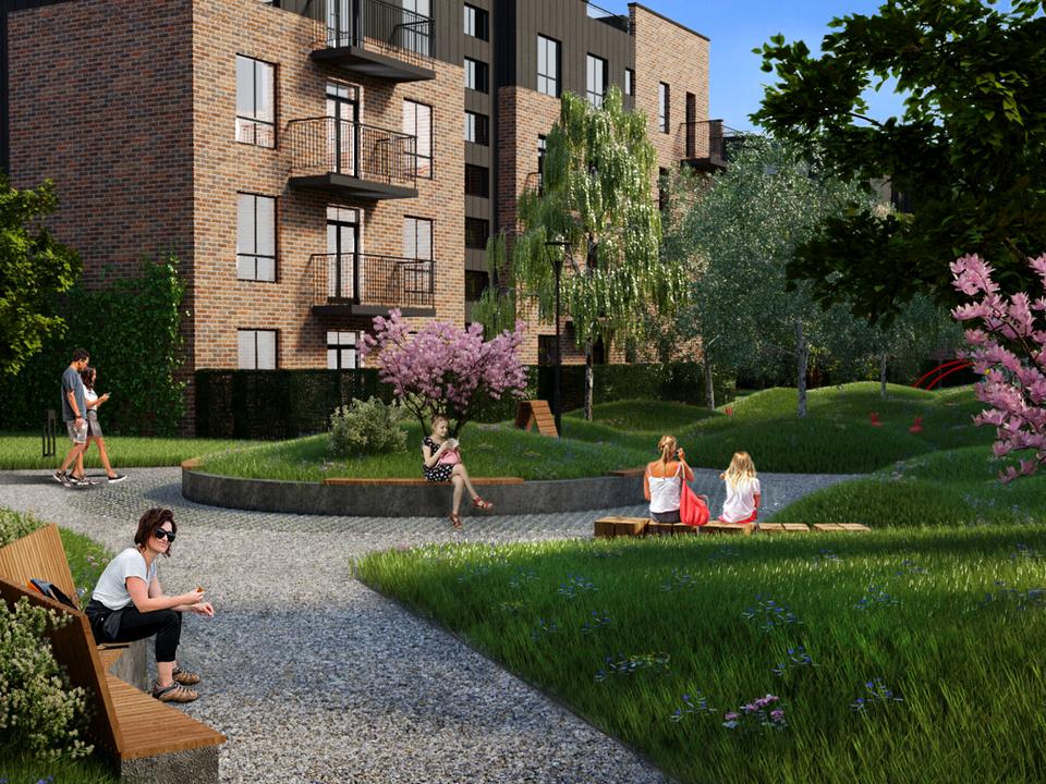 Двір без автомобілів дарує простір, затишок і відчуття безпеки. Для мешканців передбачені окремостоячі дворівневі та гостьові паркінги. Територія комплексу наповнена зеленню та чистим повітрям, закрита для сторонніх осіб і має багато місця для прогулянок. Облаштовані велосипедні доріжки, зони для відпочинку та активних занять спортом.
