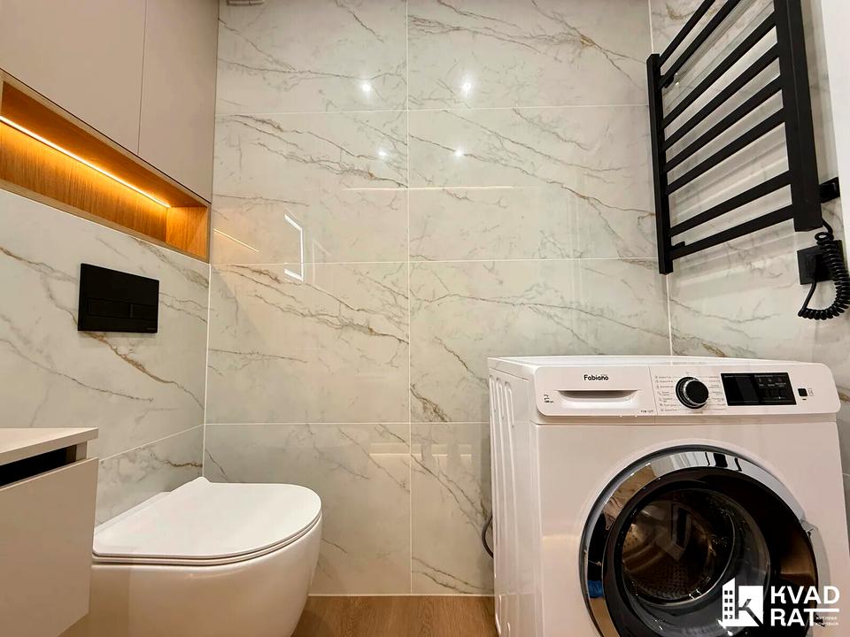 - просторий санвузол з тропічним душем, рукомийник і дзеркалом з підсвіткою, пральна машина, інсталяція