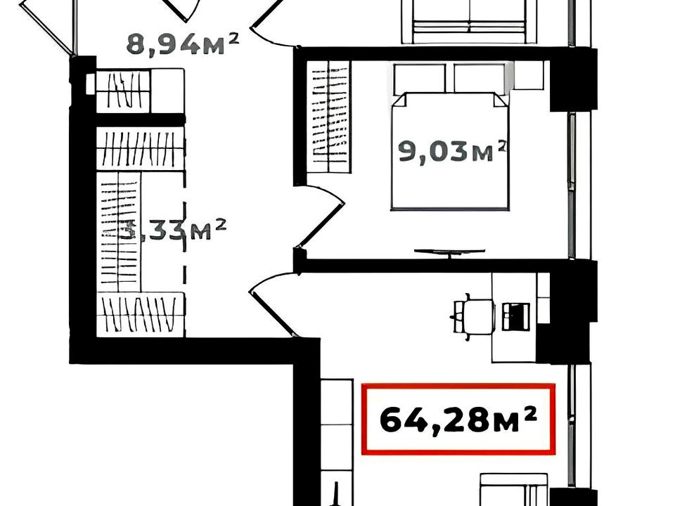 - Площа: 64,28 м²