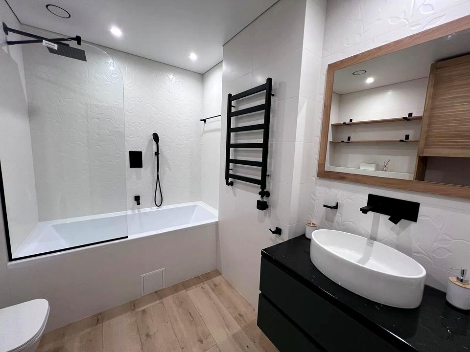 Стильна 2-кімнатна квартира з якісним дизайнерським ремонтом. Всі меблі та техніка залишаються — заїжджай і живи!Вдале планування, простора кухня, панорамні вікна, багато світла.
