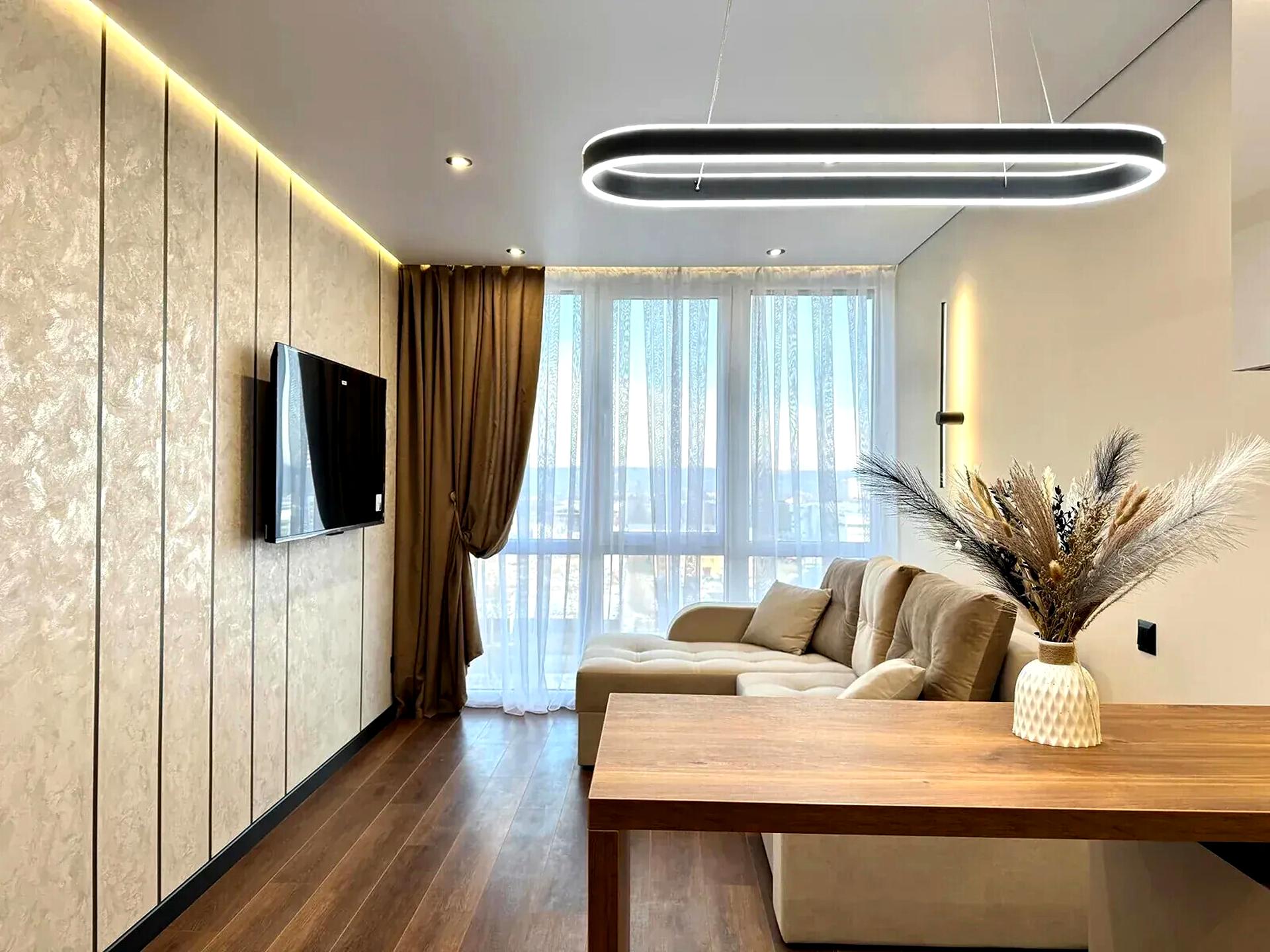 Квартира має сучасне функціональне планування: кухня-вітальня з краєвидом у двір, окрема спальня, санвузол та просторий передпокій . Зроблено якісний ремонт з використанням перевірених і надійних матеріалів.
