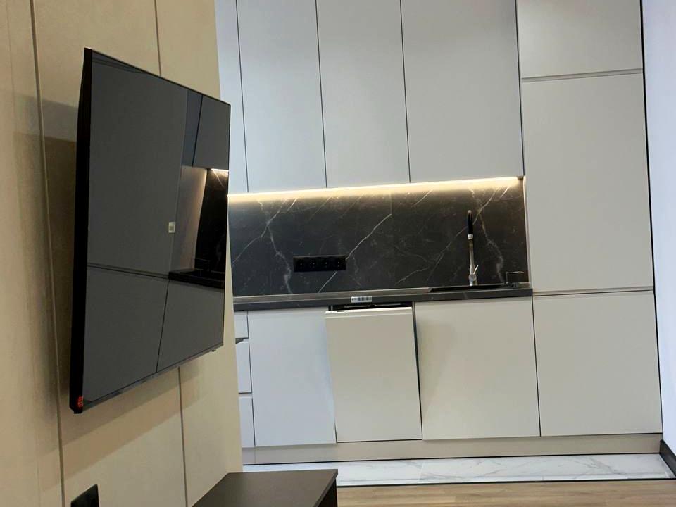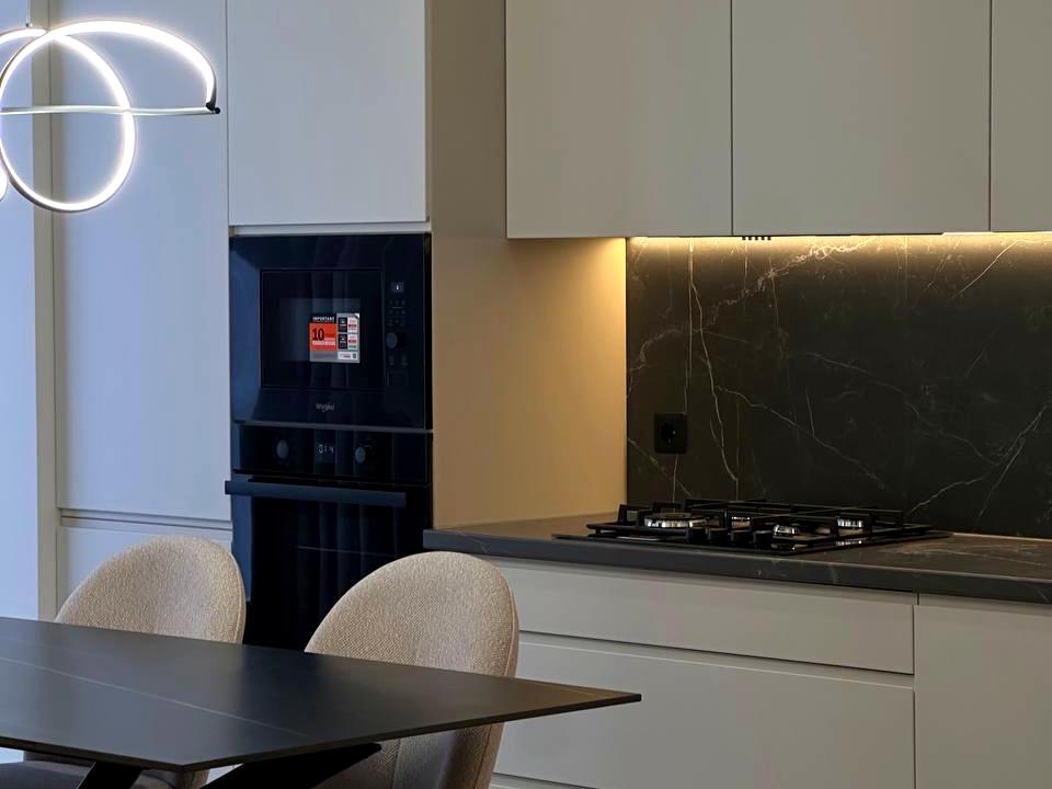 Меблі виконані на замовлення, якісні матеріали та вся необхідна вбудована техніка.