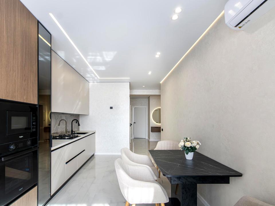 Ремонт виконаний у сучасному стилі з якісних матеріалів, продумане планування створює відчуття простору та комфорту.