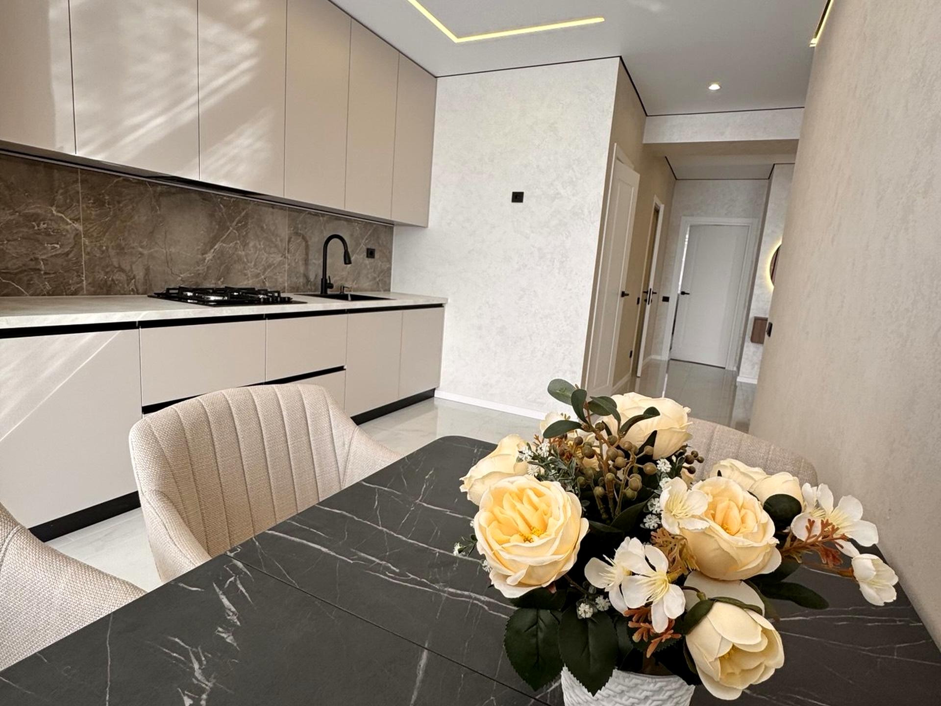В квартирі виконаний сучасний дизайнерський євроремонт у світлих тонах. Оселя повністю мебльована та укомплектована якісною технікою — все готове для комфортного проживання без додаткових вкладень.
