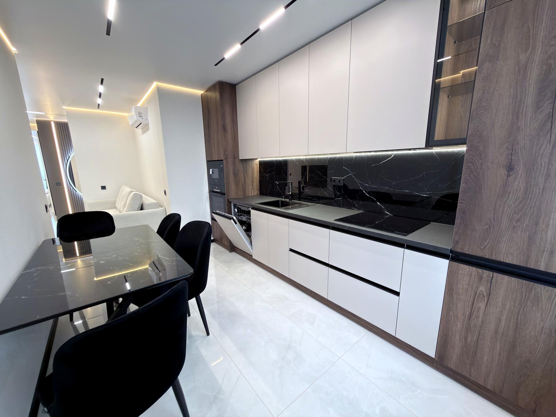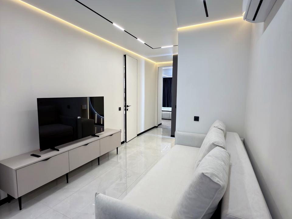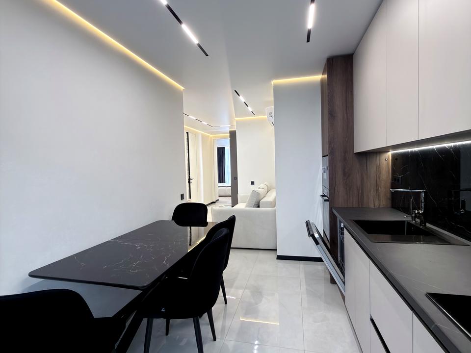 В квартирі 2 кімнати, висота стелі 2.7 метра, Технологія будівництва - Блочна, Тип будинку - Спец. проект. У квартирі є Телевізор, Підігрів підлоги, Кондиціонер, Пральна машина, Сушильна машина, Душова кабіна, Ванна, Холодильник, Мікрохвильовка, Посудомийна машина. Будинок побудований в 2024 році. Загальний стан квартири - З ремонтом. Тип кухні - кухня-студія. Кількість спален: 2. Без комісії