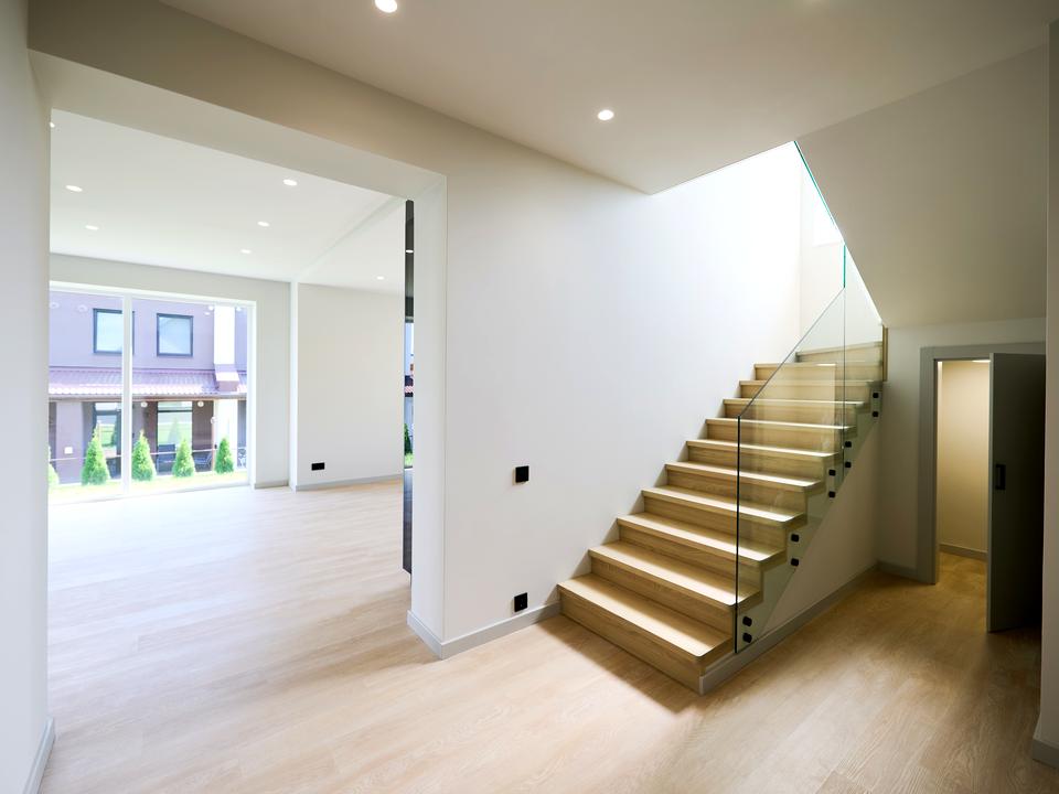 Сходи ясень , перила гартоване скло 10мм товщина . Також на першому поверсі розташована котельня яка має окремий вхід з двору .