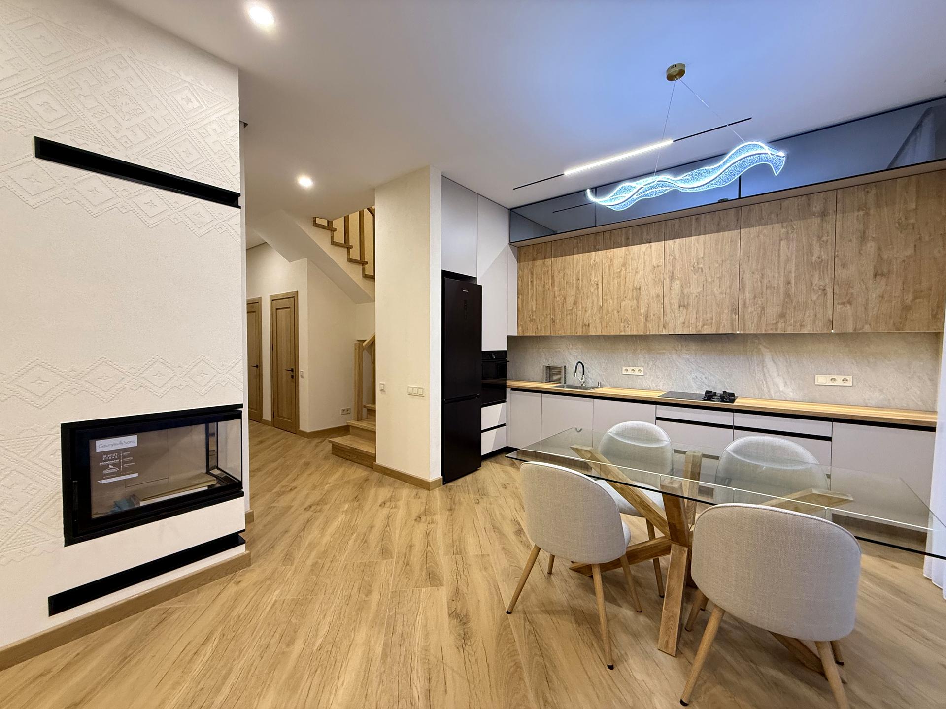 ✅ Преміум-якість: Натуральне дерево, масивні сходи, двері прихованого монтажу та панорамні вікна.