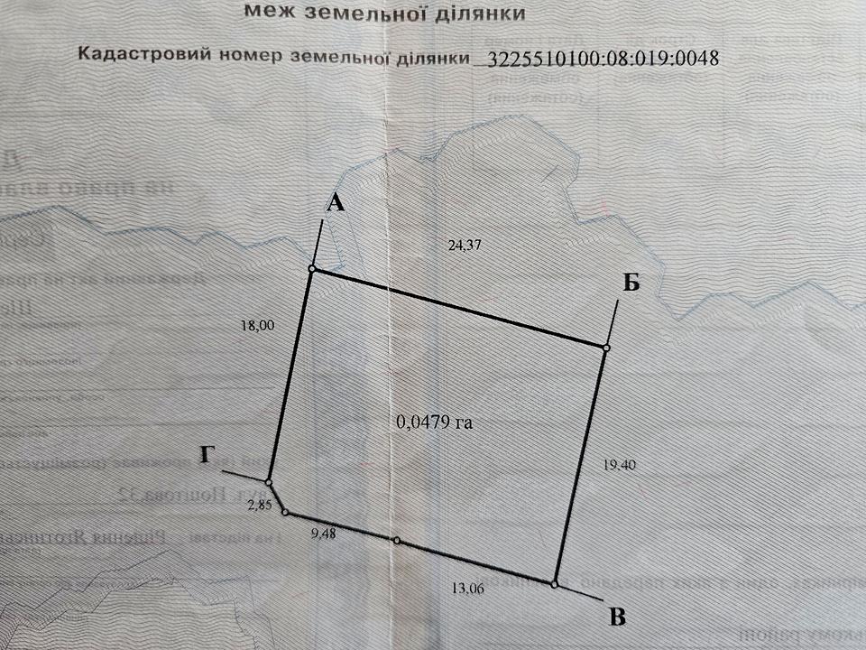 Господарство розташоване на двох земельних ділянках. 10 соток - кадастровий номер 3225510100:08:019:0047 та 5 соток - кадастровий номер 3225510100:08:019:0048.
