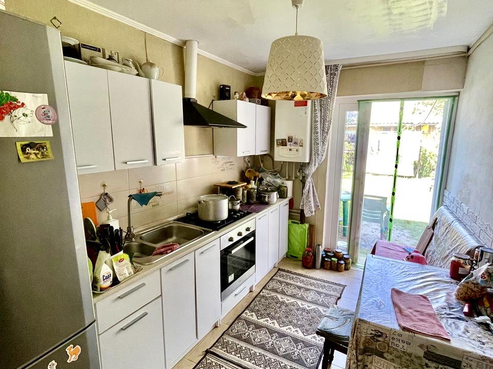 Будинок, 1 поверх, 2 кімнати. Матеріал стін - деревина, фундамент будинку - залізобетон. Під'їзд до будинку - асфальт. Площа ділянки 4 сотки. Вид з вікон у двір. Планування кімнат Роздільне. Газ природний. Є холодна вода, гаряча вода - газовий котел. Опалення котел газовий. Спільний санвузол, туалет / ванна. Сантехніка нова. Проведені. Вхідні двері броньовані, немає сходів. Покриття підлоги - ламінат, є підігрів підлоги. В будинку немає балконів. Вікна металопластикові, нові. Покриття даху - металочерепиця. Є огорожа. У будинку є Шафа, Ліжко, Пральна машина, Мікрохвильовка. Будинок побудований в 1959 році. Своя каналізація. На території ділянки є сад. У будинка 2 власника. Загальний стан будинку - З ремонтом. Поруч є дитсадок, зупинки, супермаркет, річка / озеро, ліс, школа. Будинок приватизований. Торг доречний, Ексклюзивний договір. Сантехніка нова. Інтернет бездротовий. Внутрішнє утеплення стін. Без комісії