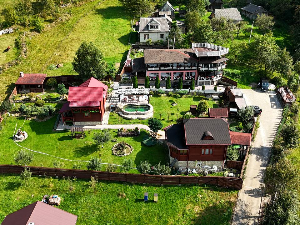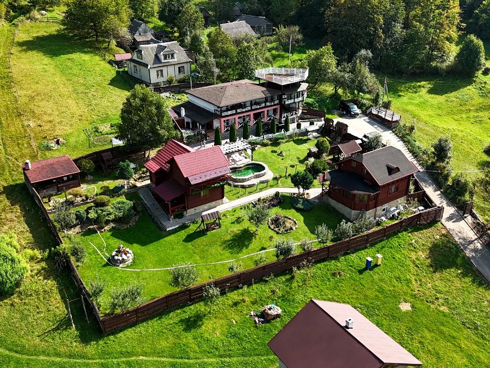Пропонуємо Вам міні-готель у Яремче, район Ямна, з неймовірним краєвидом на навколишню місцевість. Комплекс складається з трьох будівель. Два котеджі під здачу мають два поверхи, і один має додатково підвал. Площа одного складає 64 м², іншого - 110 м². Також третє приміщення, двоповерхове, площею 180 м², включає в себе 5 окремих номерів на другому поверсі. На першому поверсі знаходиться кафе, фінська сауна, більярдна та карпатський чан. Також в процесі будови третій поверх, на якому планується оглядова тераса.