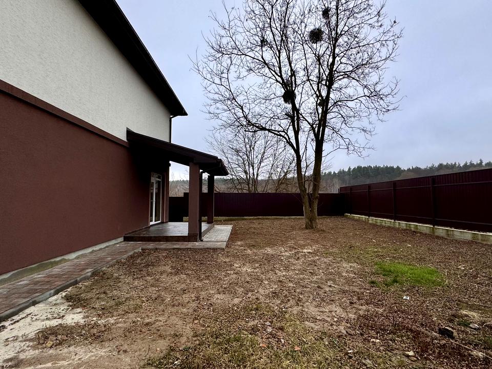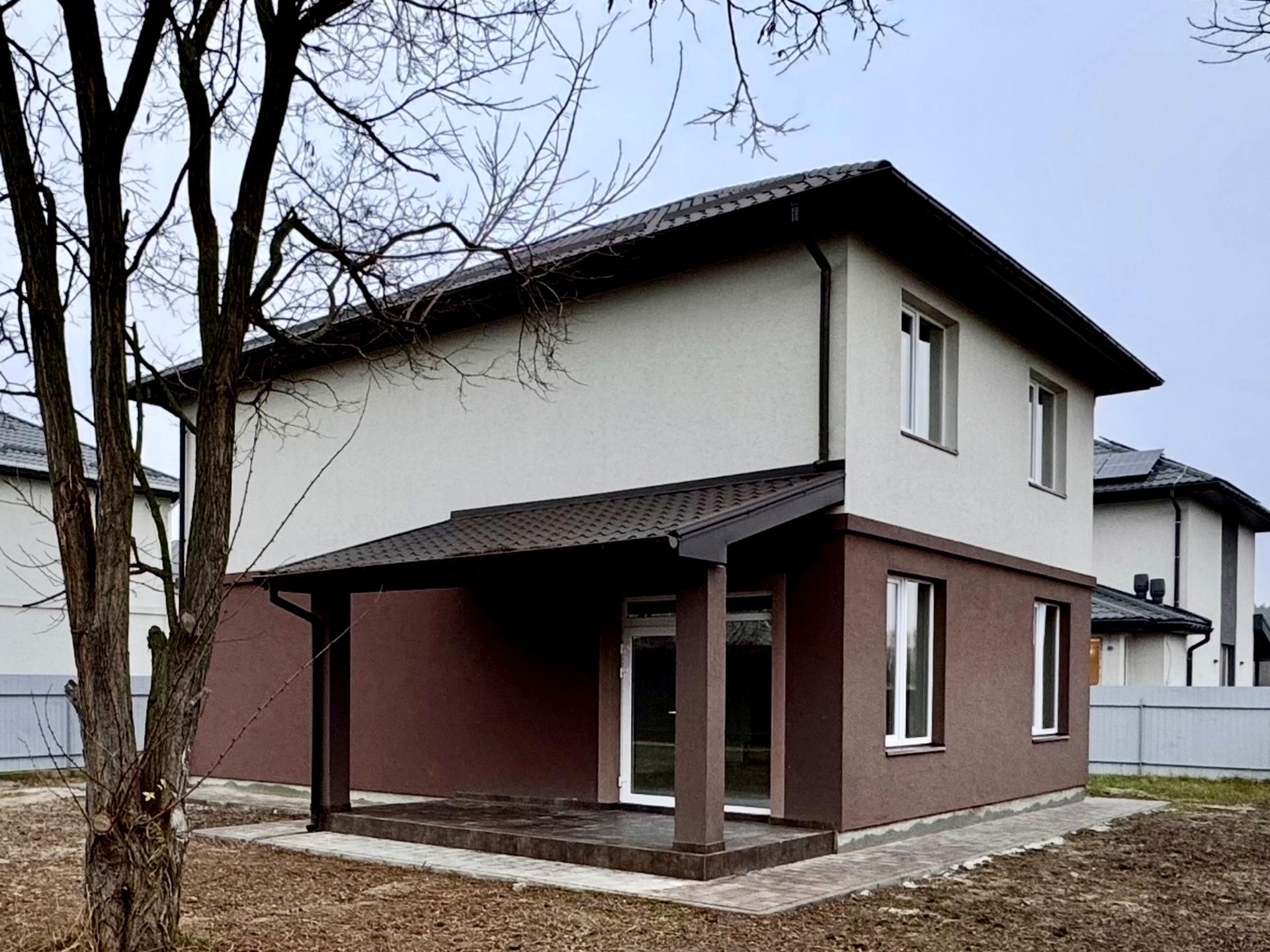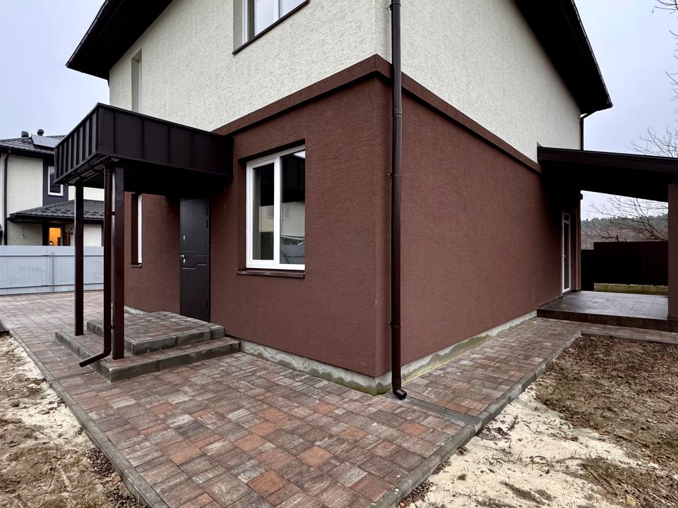 Будинок, 2 поверхи, 4 кімнати. Матеріал стін - газоблок, фундамент будинку - залізобетон, матеріал перекриттів - монолітний залізобетон. Під'їзд до будинку - асфальт. Площа ділянки 5 соток. Планування кімнат Роздільне. Газ природний. Холодна вода - свердловина. Є опалення. Тип кухні - кухня-студія. Покриття даху - металочерепиця. Немає підвалу. У будинку є Підігрів підлоги, Ванна, Тераса. Своя каналізація. Загальний стан будинку - Без ремонту. Зовнішнє утеплення стін. Без комісії