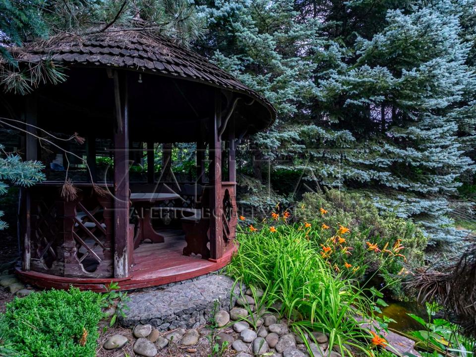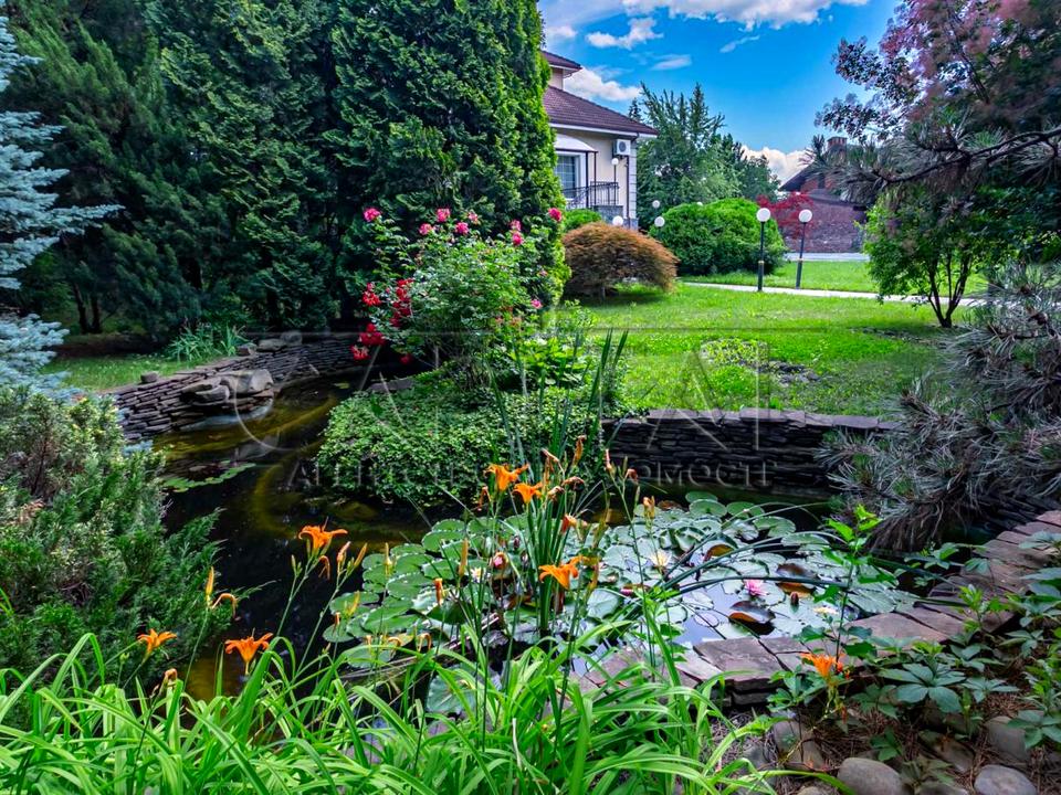 On the territory: Landscape design, swimming pool, barbecue area, gazebo, pond, staff house