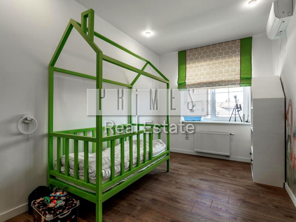 2. 2 дитячі спальні, 1 батьківська майстер спальня, 3 санвузли, 2 гардеробні, вітальня з кухнею