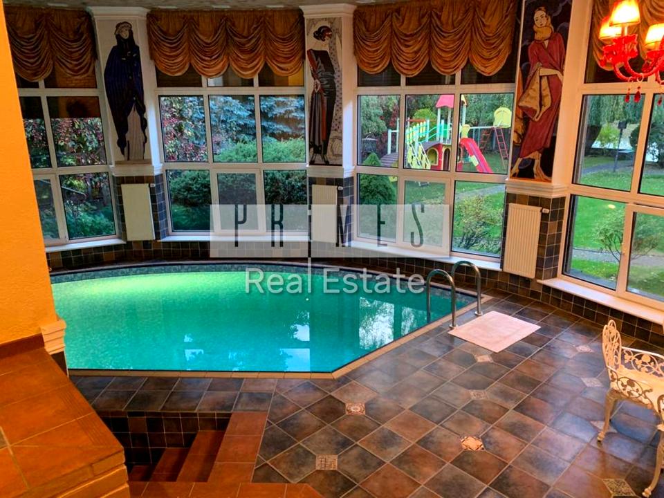 Перший поверх-велика гостина з обіднім столом для гостей та каміном; велика кухня з коморою та двома холодильниками; вихід на терасу та басейнову зону; загальний санвузол; спальня для гостей зі своїм санвузлом та міні гардеробною.
