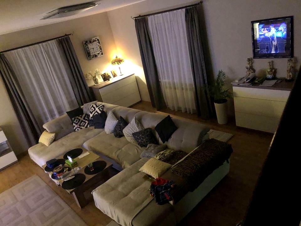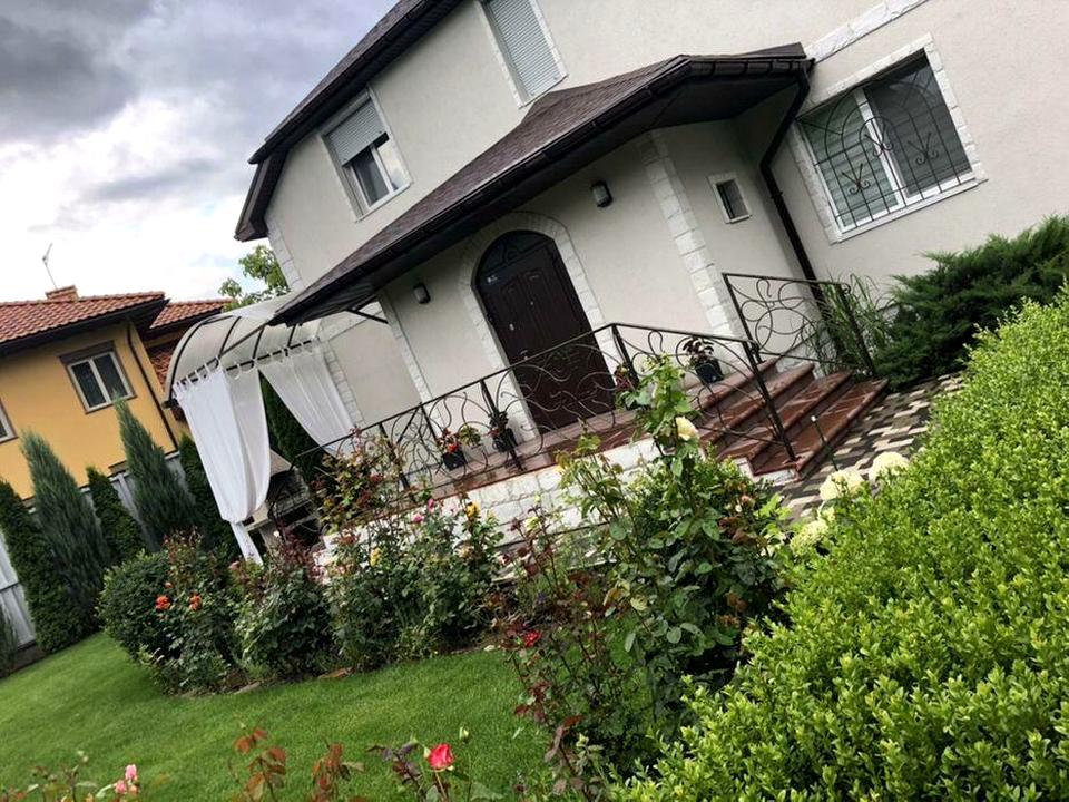 Складається з 5-ти кімнат, вбиральні, камінної зали, 2-х кухонь, 3-х санвузлів, бойлерної, великого льоху. У будинку встановлена сигналізація з тривожною кнопкою, відеоспостереження, громовідведення, wi-fi. У будинок заведено 20 кВт зі своєї трансформаторної підстанції, є генератор на 6 кВт. В наявності газова та індукційна плити. Будинок дуже теплий із підігрівом підлог. Влітку – прохолодно. На другому поверсі встановлено 2 кондиціонери у спальні та кабінеті.