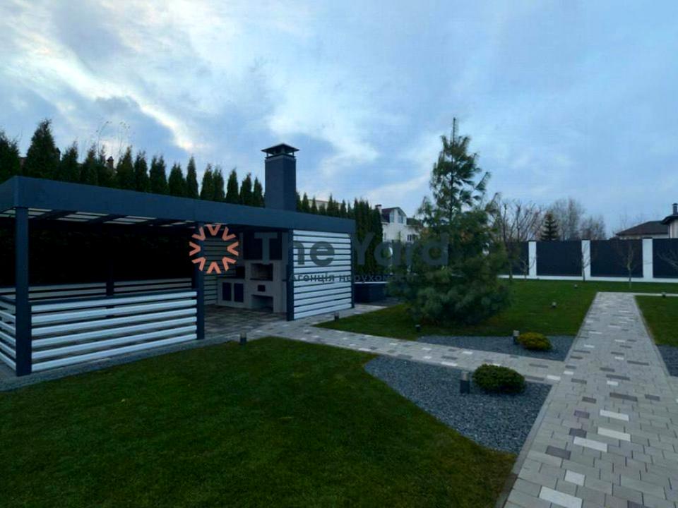 Бесідка з барбекю, гараж-навіс на 4 авто.