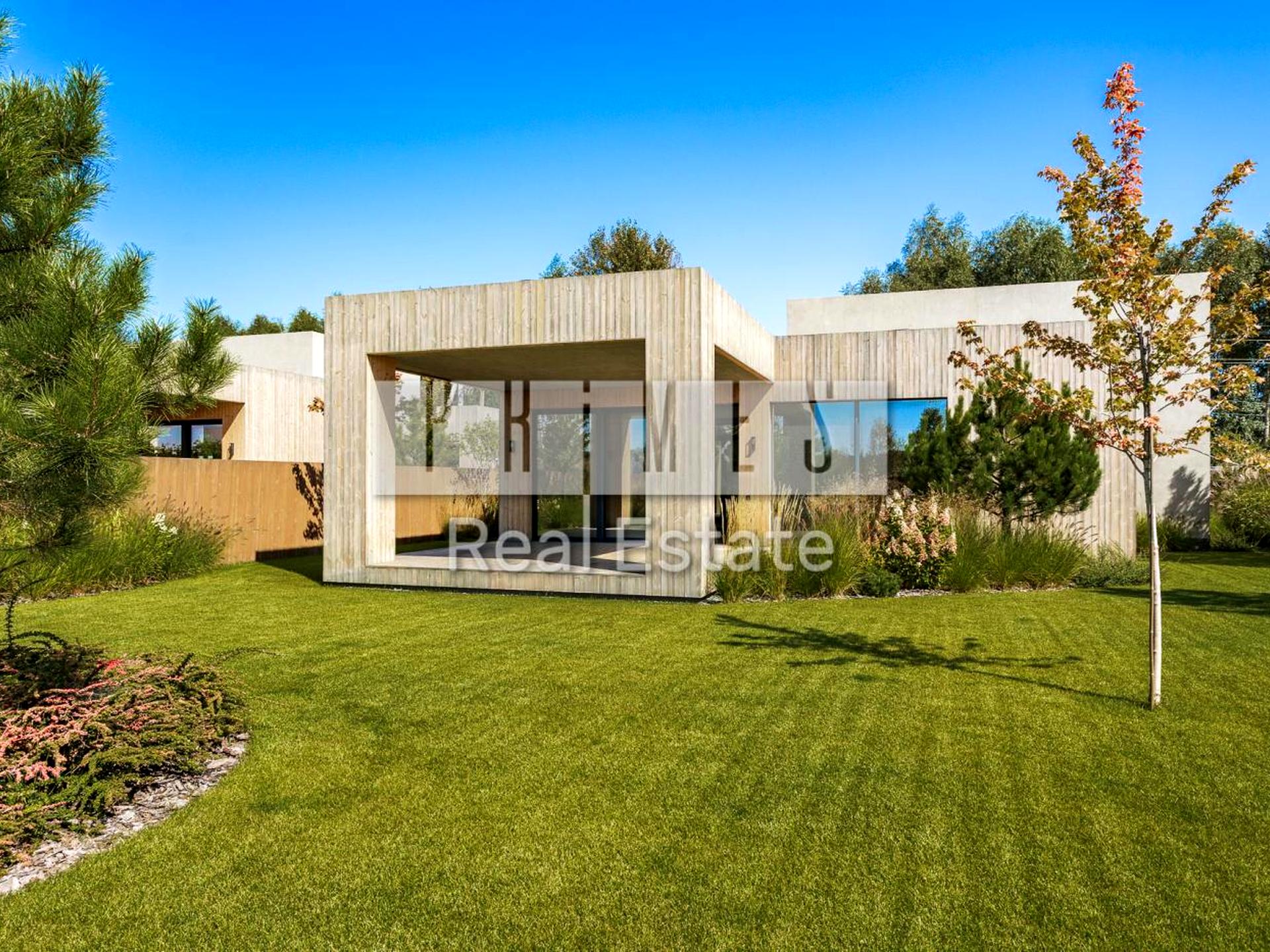 цоколь и входная группа - итальянский прессованный камень гардеробной - Две детские комнаты - Гостевой санузел - Хозяйственный блок - Изюминка дома - живой канадский клен, взорванный внутри за стеклом, который виден из кухни, гостиной, прихожей и даже ванной комнаты. Участок и благоустройство - Авторский ландшафтный дизайн - Автоматический американский автополив газона - Декоративное освещение территории и фасада - Современные светильники премиум-класса - Забор по периметру - высота 2 м - Автоматические откатные ворота - Навес на 2 авто + гостевая парковка на 6 машин - Всего в 2 Электричество - 15 кВт - Газ - подведенный - Водоснабжение - собственная скважина 60 м с насосом Grundfos (Синоманский горизонт) - Канализация - биосептик (станция биоочистки) - Все системы подготовлены к установке оборудования по дизайн-проекту - Есть рабочий дизайн- проект интерьеров стоимостью € 15 0 Локация среди элитной застройки с быстрым доступом в Киев - Дом для ценителей современной архитектуры, конфиденциальности и гармонии с природой.