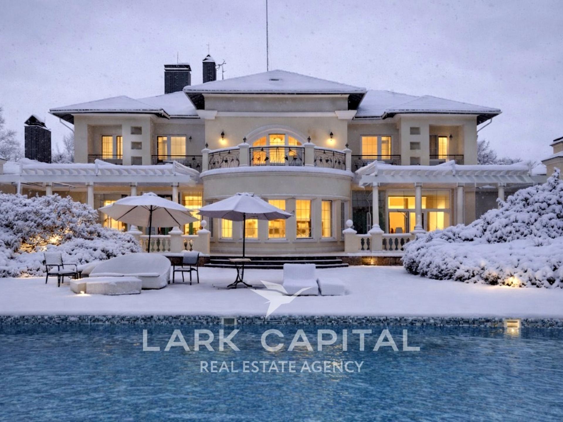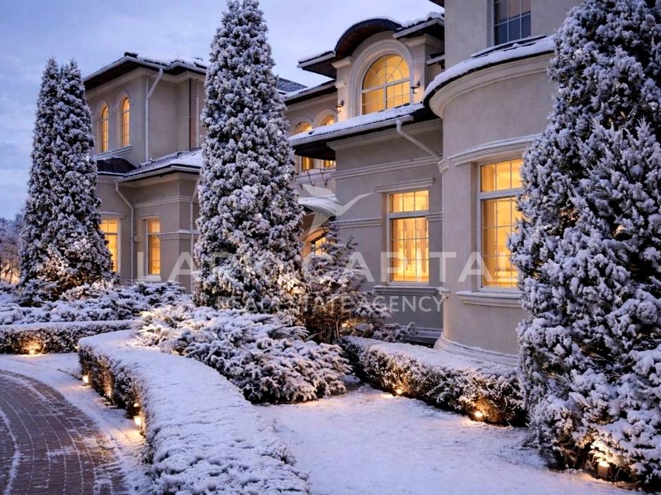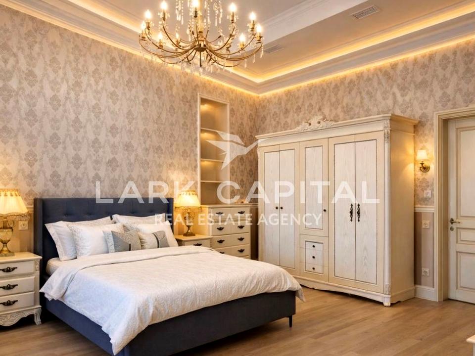 Вишукана резиденція в стилі Provence з натуральними дерев’яними меблями, мармуровими підлогами та сходами. Простора вітальня 154,6 м² з каміном, окрема столова, кухня, бібліотека та кабінет.