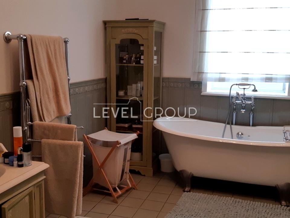1й этаж – гостиная с выходом на террасу, кухня, столовая, 2 гардеробные, бассейн, сауна, тренажерный зал, 2 санузла, кладовая, подсобные помещения, топочная, зимний сад, гараж. 2й этаж – 5 комнат, 3 санузла, 2 гардеробные, подсобное помещение (антресоль). Мансарда – кинотеатр 80 м. Цоколь – техническое помещение 103 м.. Дизайнерский ремонт, дом укомплектован мебелью и оснащен бытовой техникой. На участке 50 соток ландшафтный дизайн, беседка на берегу Днепра, причал для яхт, выход на фарватер Днепра. Гостевой дом с гаражом на 3 автомобиля. Коммуникации централизованные