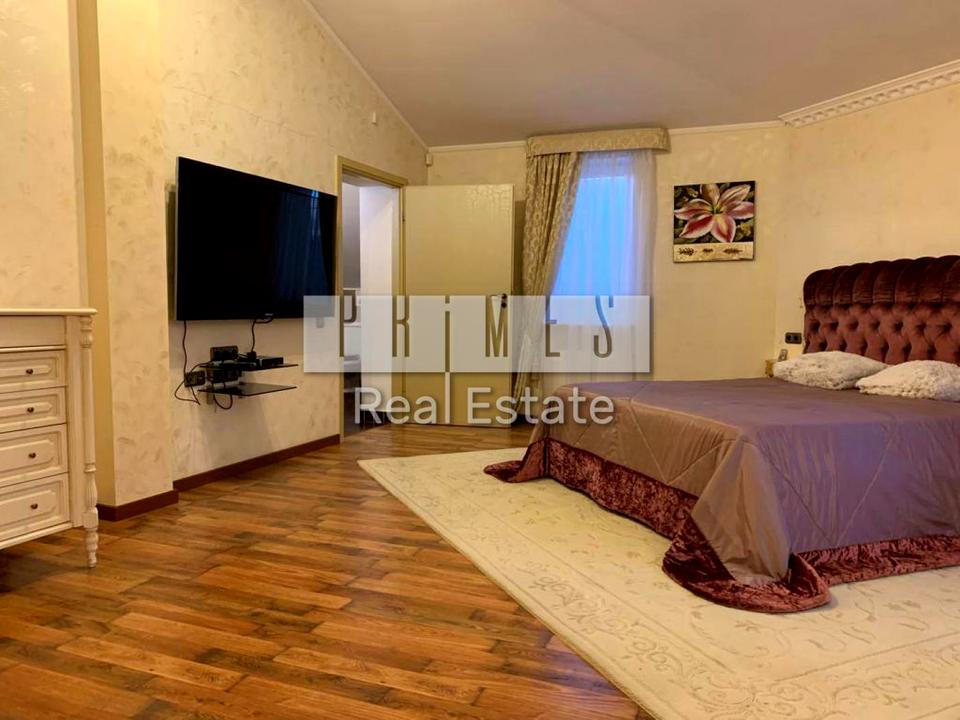 Будинок, 3 поверхи, 5 кімнат. Матеріал стін - цегляний. Під'їзд до будинку - асфальт. Площа ділянки 22 сотки. У будинку є Телевізор, Кабельне ТБ, Супутникове ТБ, Камін, Пральна машина, Душова кабіна, Ванна, Холодильник, Мікрохвильовка, Автополив, Газон, Сад/город, Зона мангалу, Тераса, Бесідка, Лазня, Басейн. Будинок побудований в 1994 році. Своя каналізація. Загальний стан будинку - З ремонтом. Холодна вода - свердловина. Кількість санвузлів: 3. Кількість спален: 3. Комісія за послуги 5 %
