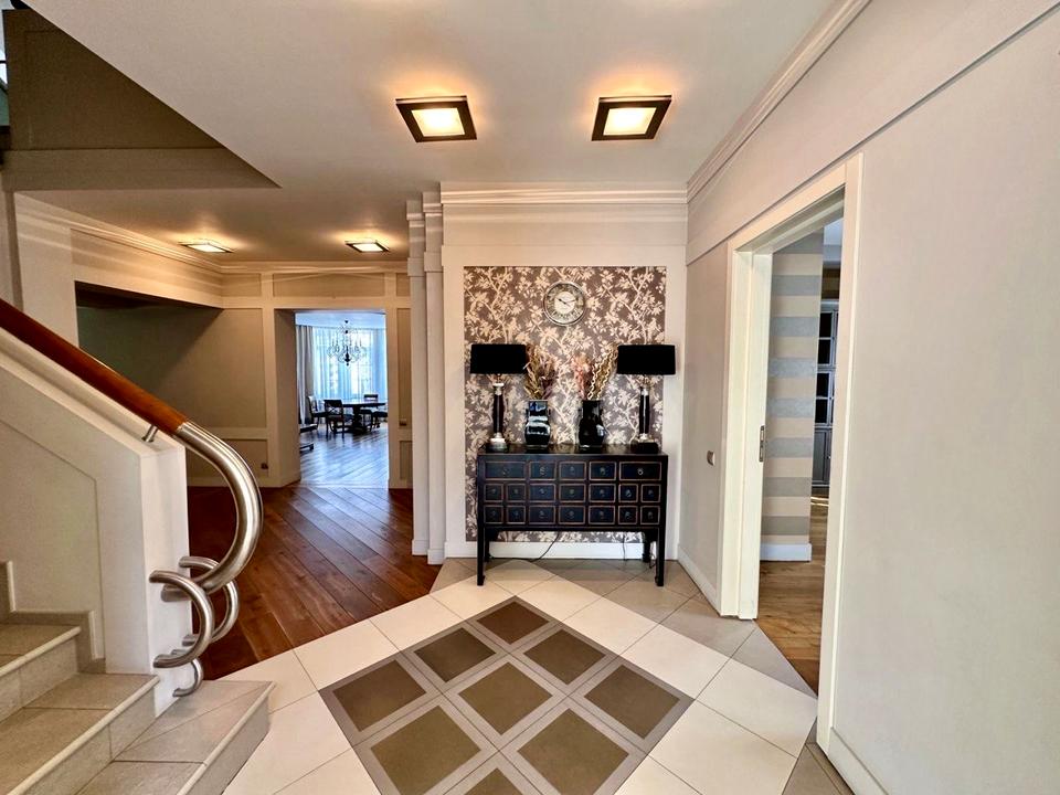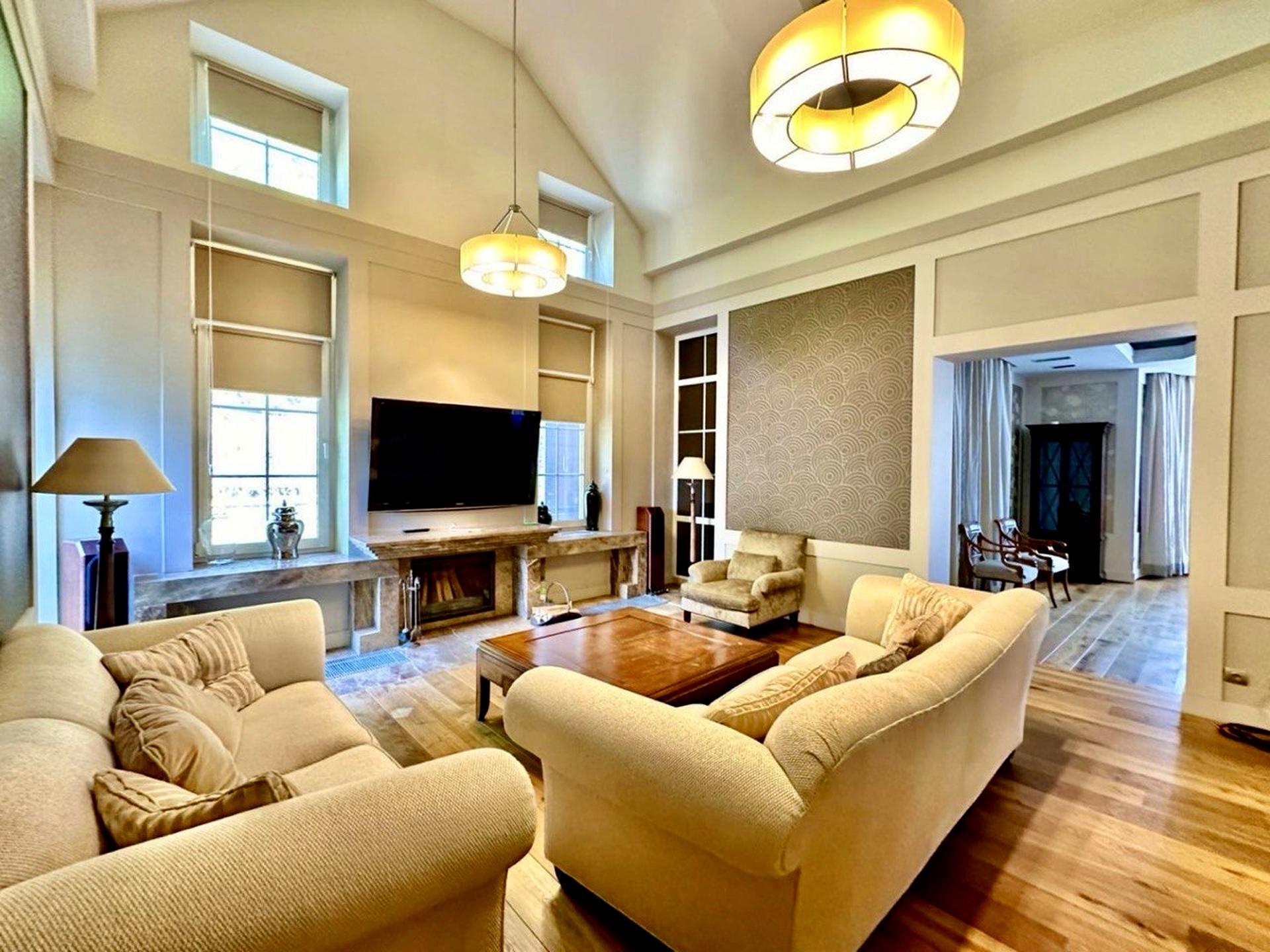 Дуже зручне планування, - окремо дитячий блок, дві спальні санвузол і гардероб, окремо батьківський блок - спальня, санвузол, гардероб-спортзал, окремо житлова зона - величезна кухня зоною для сніданків, столова, в їдальня з каміном та кабінет.