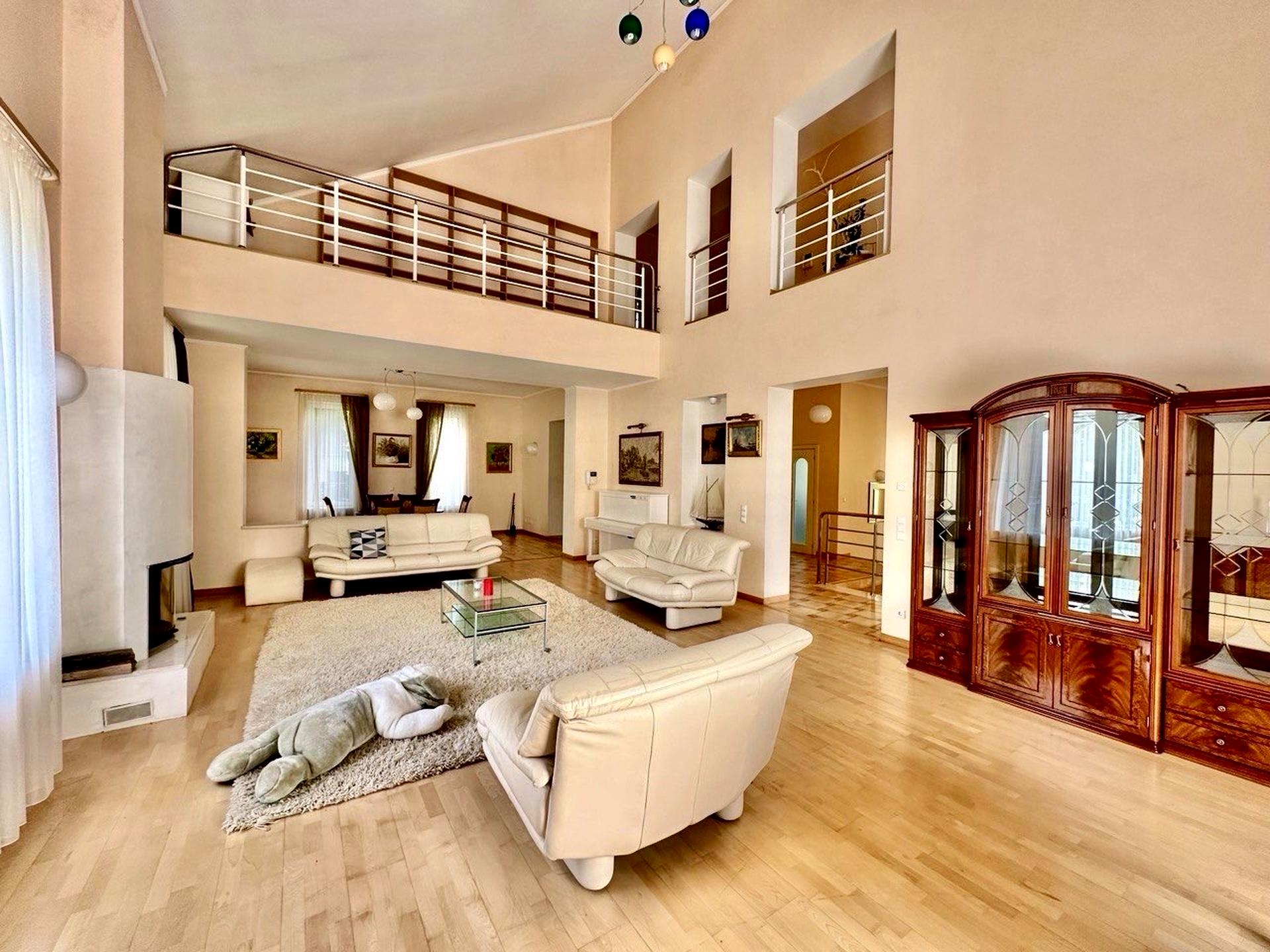 Планування: Вітальня з каміном, кухня з зоною їдальні, кабінет, 3 спальні з с/в, більярдна, басейн, сауна.