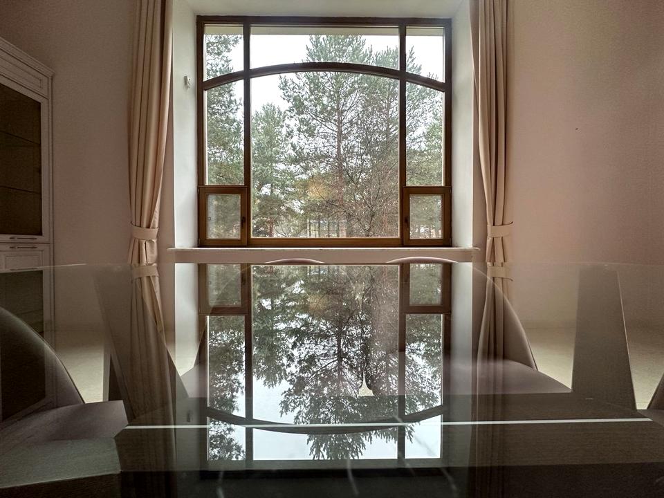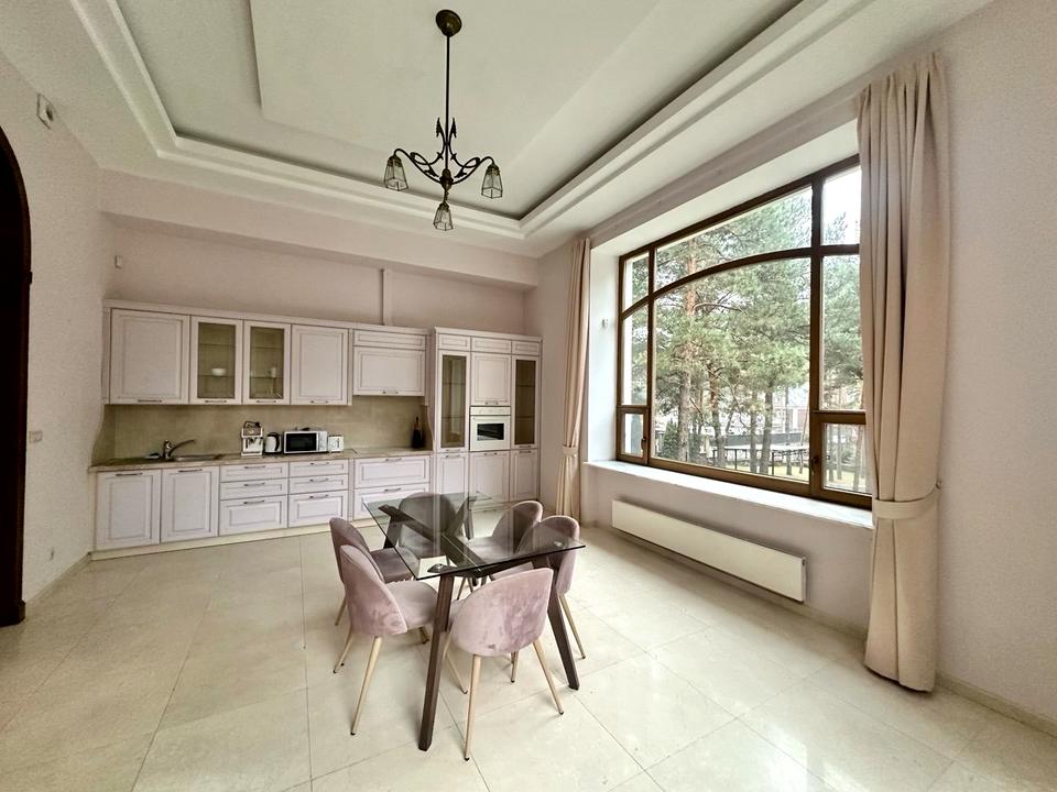Ремонт виконаний у сучасному стилі, з використанням найкращих матеріалів: мармур, білий ясен, дерев'яні двері та вікна.