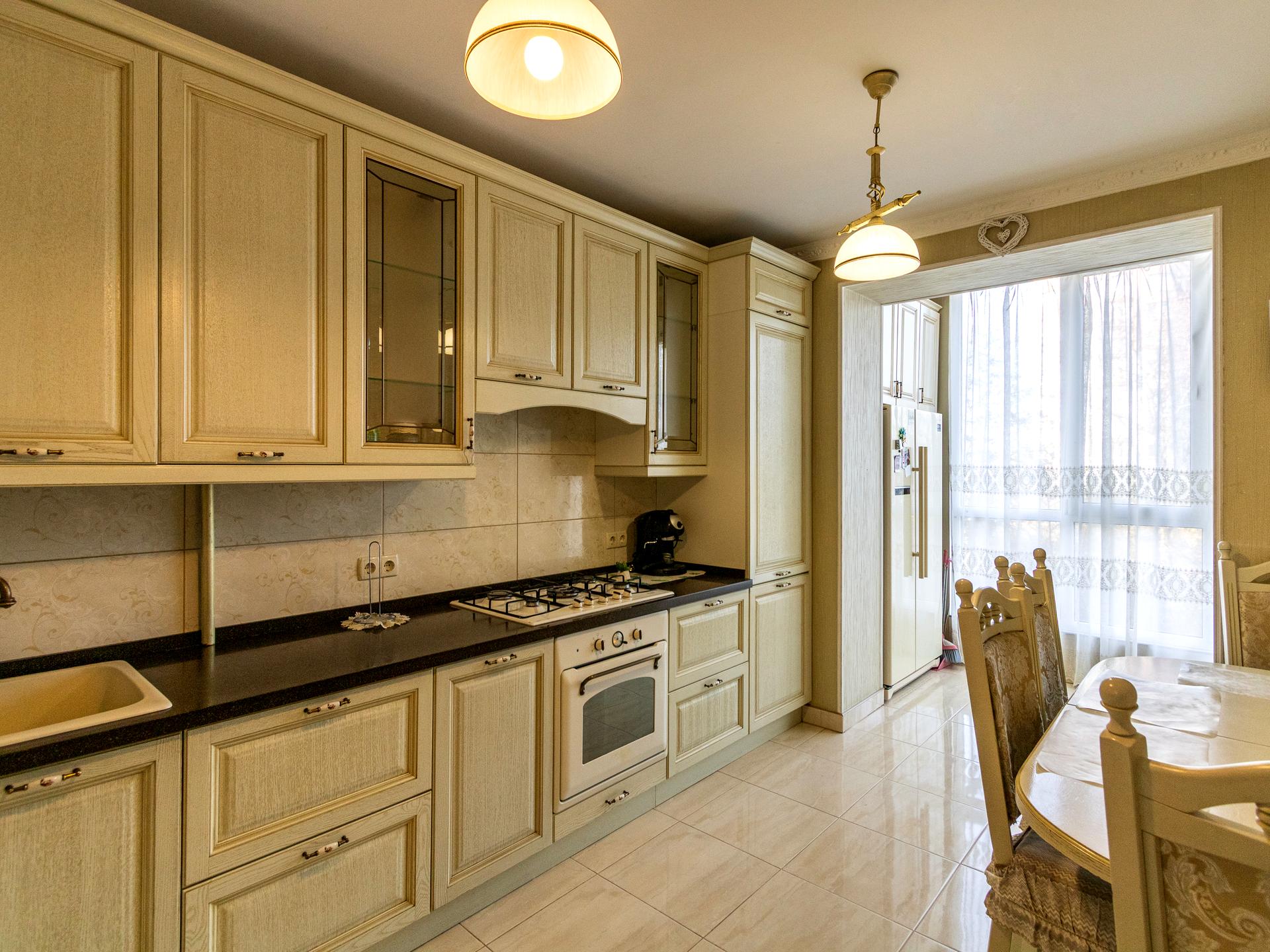 Кухня продумана до найменших деталей: є посудомийна машина, великий холодильник та окрема морозильна камера — усе необхідне для зручного сімейного побуту.