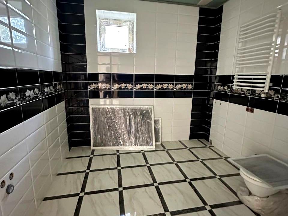 Виконано майже всі чорнові роботи: розведена електрика, сантехнічні труби, встановлено теплу підлогу та систему опалення. У коридорі, ванній кімнаті та на кухні покладена плитка.