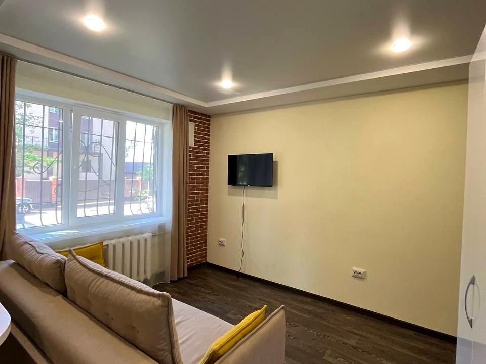 Будинок - Типова панель, в квартирі 1 кімната. Планування кімнат Студія. В квартирі є Телевізор, Шафа, Холодильник, Ліжко, Пральна машина, Кондиціонер, Сигналізація, Лічильники, Душова кабіна. Загальний стан квартири - Євроремонт. Надання документів. Працює без світла - вода, газ. Комісія за послуги 50 %