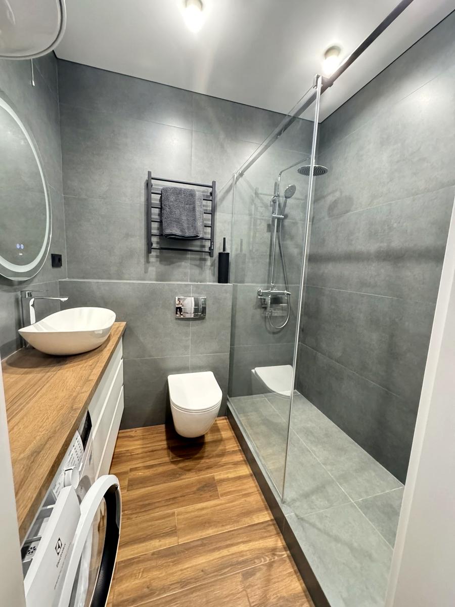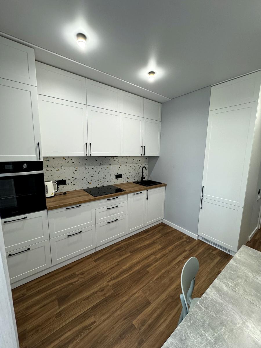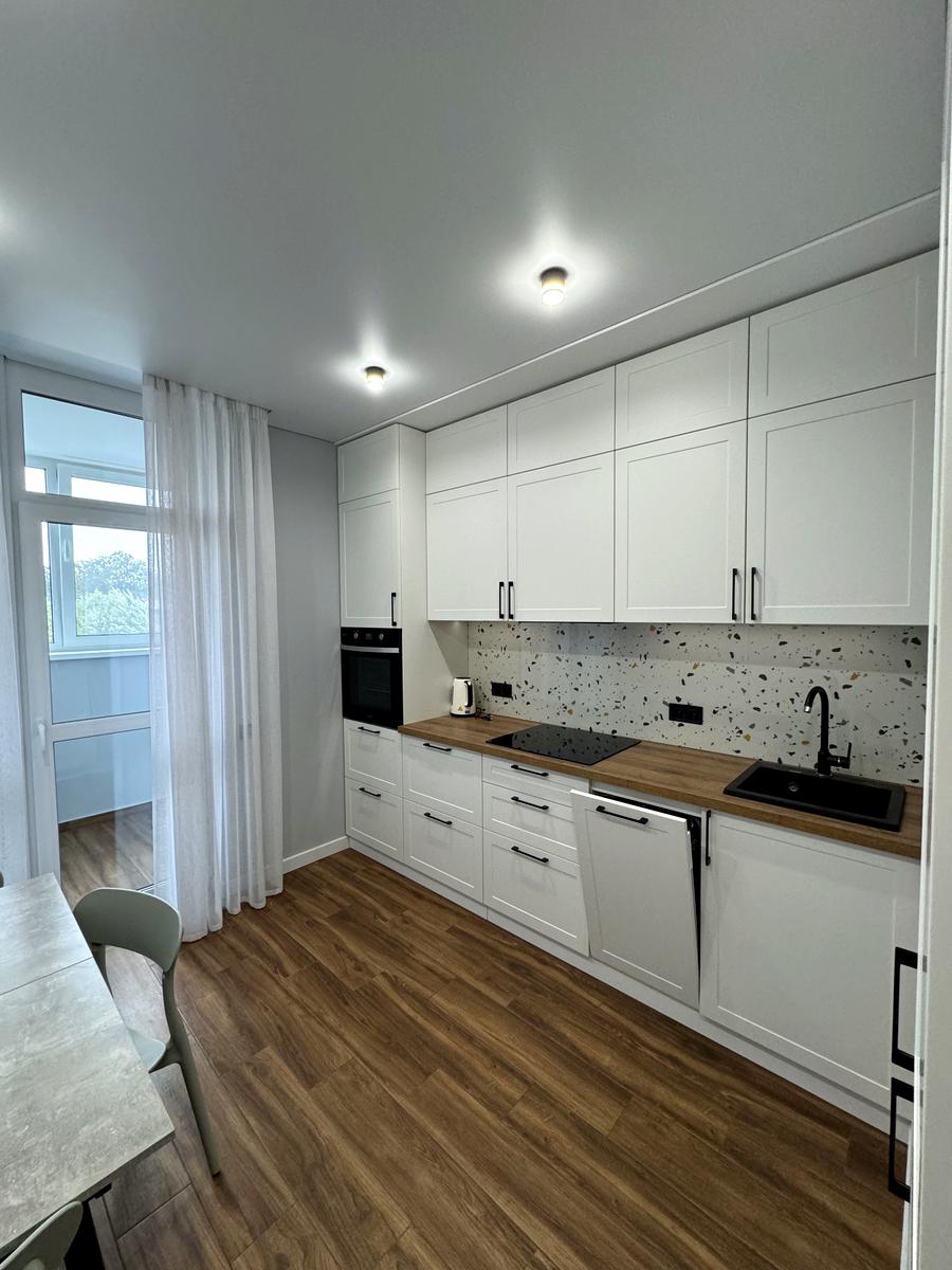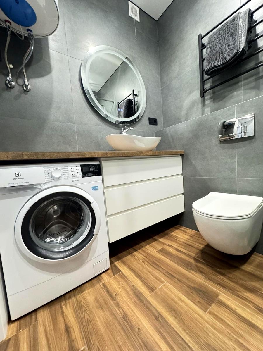 Повна комплектація меблями та технікою: посудомийна машина, холодильник, телевізор, бойлер, тепла підлога в зоні плитки.