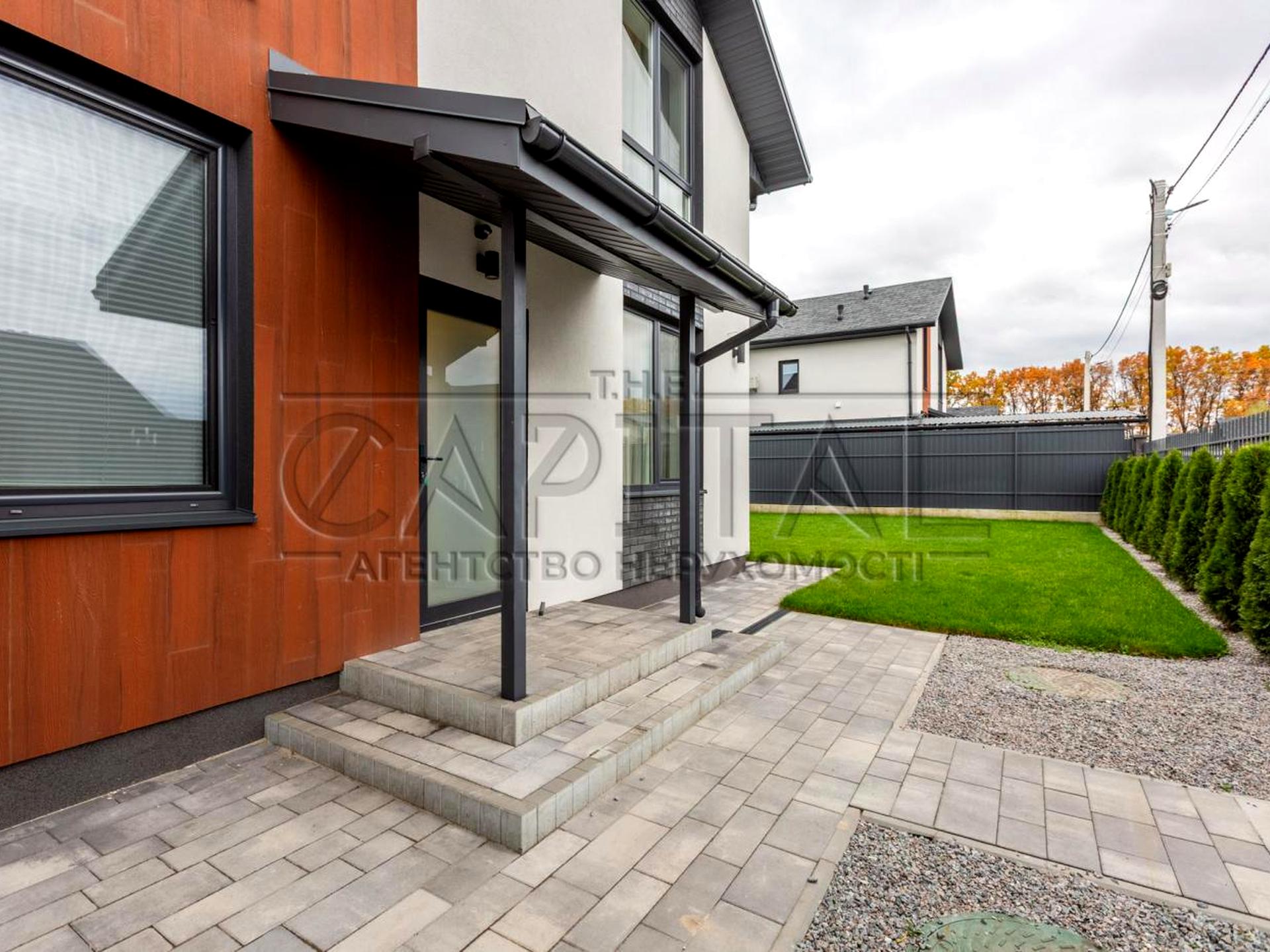 Встановлено водостічну систему, прокладено тротуарну плитку навколо будинку, а також доріжку до входу та майданчик для автомобіля.